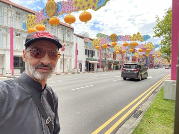 10 – في وسط العاصمة السنغافورية ، والسماء شبه غائمة والجو شبه معتدل وكثير من الصينيين وقليل من الأوربيين واليابانيين وندرة من العرب .