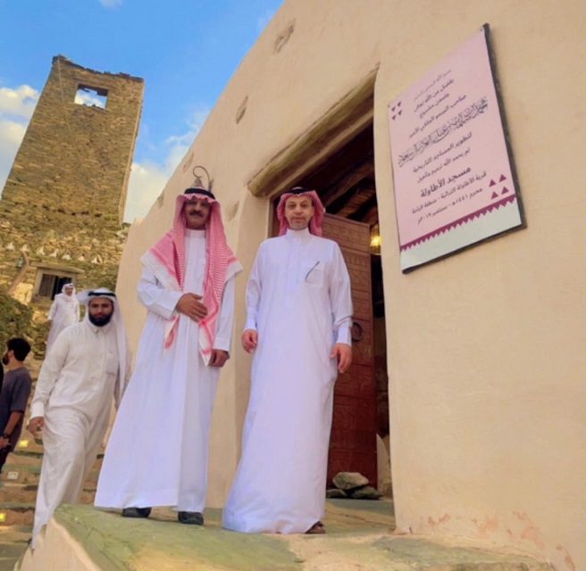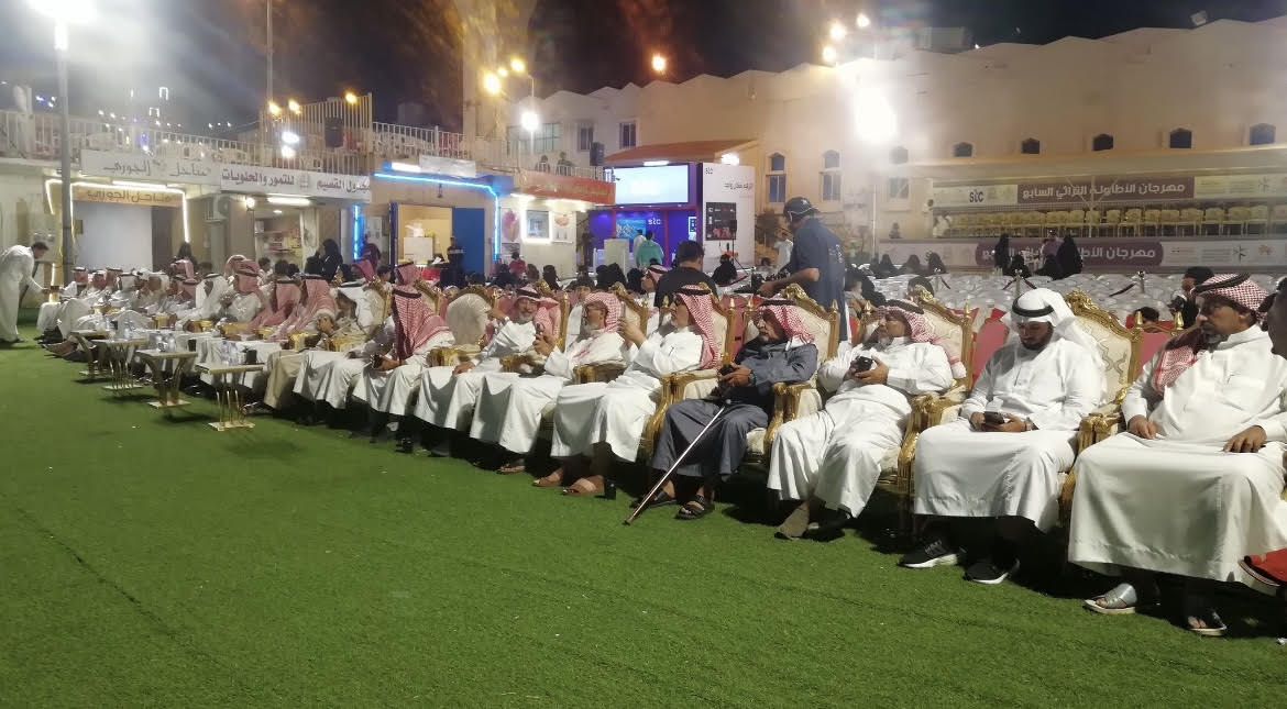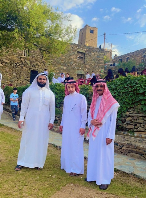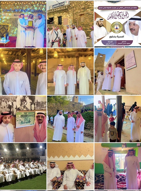 وقد استقبل الدكتور سعود بكل حفاوة وترحاب وتقدير من قبل شيخ قبيلة قريش الأستاذ فهد بن جابر الحسين وأعضاء جمعية التنمية الاجتماعية وأعضاء التنظيم لمهرجان الأطاولة التراثي السابع ، وطافوا في جولة على الوادي الأخضر وما احتوى عليه من مشاهد تراثية للحرث والزرع والصرام والدياس والطحن وصناعة الخبزة المشرقة وأعمال البناء والنحت على الحجر وسوق المنتجات التراثية والأسرية والأسواق والمقاهي الحديثة وغيرها من الفعاليات التراثية في الوادي،، ثم جابوا القرية التراثية وما احتوت عليه من ممرات وفلجان ، وزاروا قلعة الحسين وحصن العثمان ومتحف الشملاني وبعض المتاحف الأخرى والمسجد الجامع القديم في القرية التراثية ، وأدوا مع الزوار العرضة ، وبعد صلاة العشاء تشرف الدكتور سعود بالحديث عن بعض خبراته وتجاربه في محطات حياته المتنوعة والقاء بعض نصوصه الشعرية في أمسية ثقافية نظمها نادي الباحة الأدبي والثقافي في قافلته الثقافية التي حطت في مهرجان الأطاولة التراثي السابع بالتعاون مع جمعية التنمية الاجتماعية بالأطاولة ، وقد حضر الأمسية واللقاء جمع من المثقفين وأعلام المنطقة ومجموعة من زوار المهرجان ، وتشرف الدكتور سعود في نهاية اللقاء بتكريمه من إدارة النادي وتكريمه بضيافة شيخ قبيلة قريش في منزله بالأطاولة ، وقد التقطت لمشاركة الدكتور سعود الزهراني بعض الصور التذكارية .