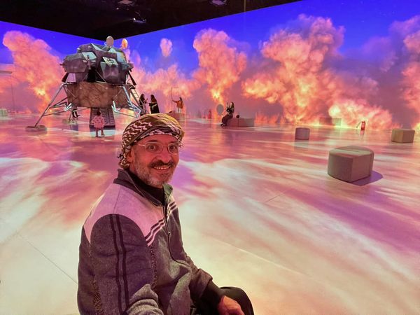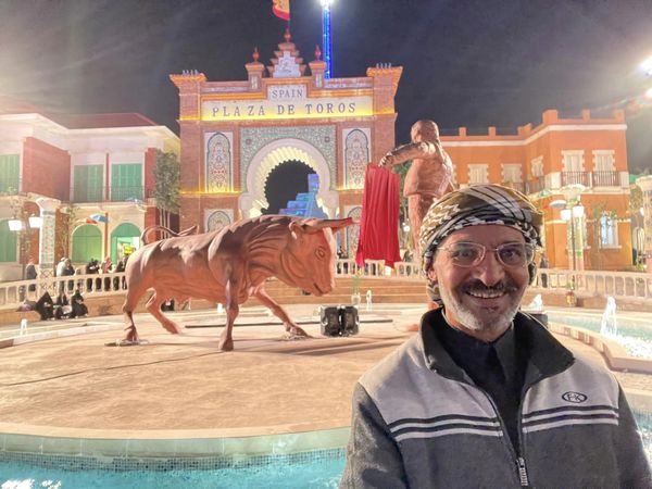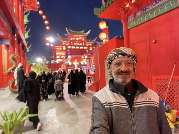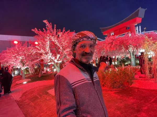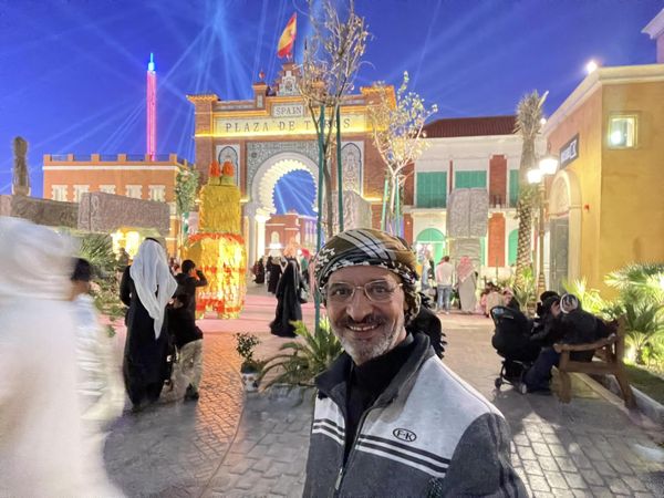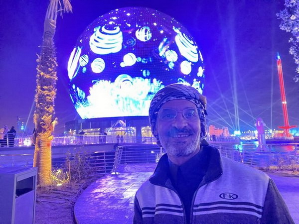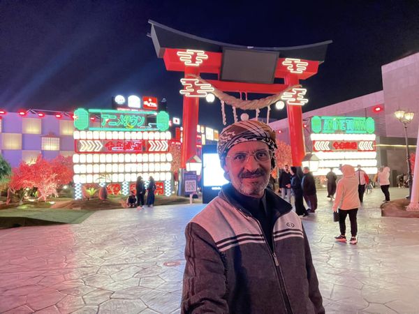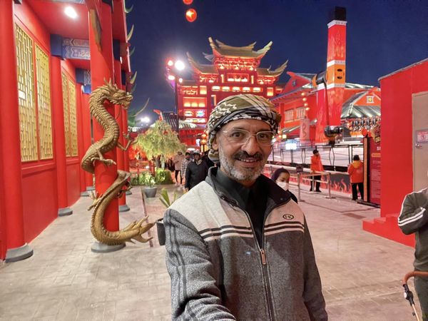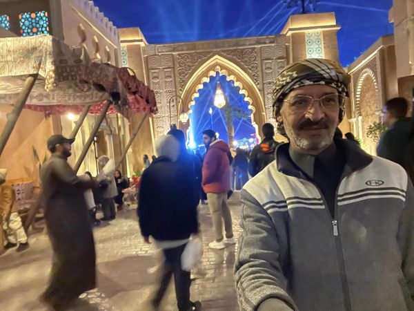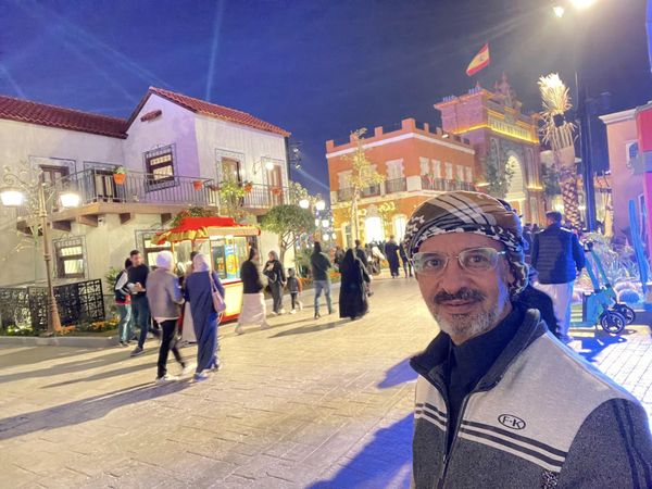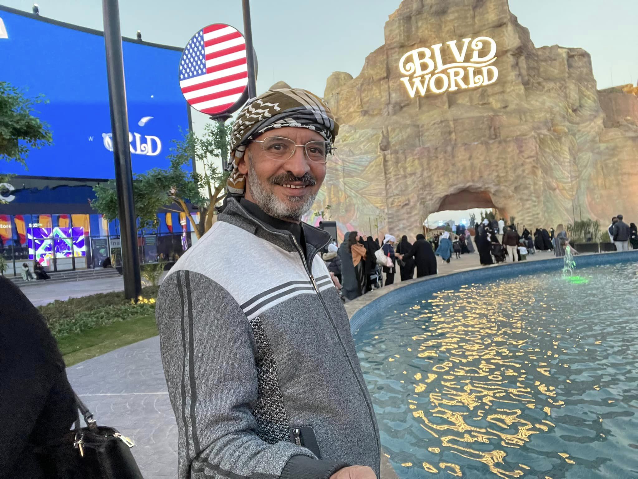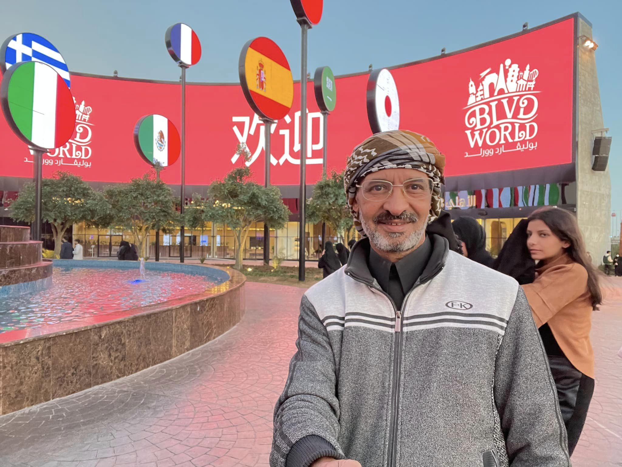 وتجول في أجنحة الدول المشاركة أمريكا وفرنسا والمكسيك أسبانيا وإيطاليا واليونان والهند والمغرب العربي واليابان والصين وشاهد الكثير من العروضات الفنية والتراثية وعروض الفضاء والقوارب والتلفريك والمنطاد واستمتع بتذوق بعض الأطعمة والمشروبات الشهيرة في بعض البلدان المشاركة ولفت انتباهه ازدحام ساحات البوليفارد وأجنحة الدول المشاركة ومسارح العروضات الفنية بالزوار من مختلف الجنسيات على الرغم من مضي مدة طويلة منذ انطلاقته ، كما لفت انتباهه قاعة الأوكاريوم وعروض الدلافين ووفرة قاعات وساحات الألعاب المتنوعة للكبار والصغار في مناطق متعددة تحيط بها بحيرة مائية تزينت بالنوافير والقوارب المتنوعة والسيارات العائمة والألعاب النارية المثيرة للإعجاب ، وقد كانت رحلة عبر ثقافات العالم المتنوعة والممتعة ، وقد التقطت له بعض الصور التذكاية خلال تجواله .