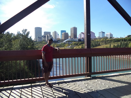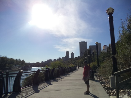 وتعد ضفاف نهر ساسكاتشوان في وسط إدمنتون من المعالم السياحية الجاذبة لأهالي المدينة والزوار في العطل الأسبوعية والرسمية ، وقد جهزت للمتنزهين على ضفاف النهر ممرات المشاة وممرات الدراجين في منطقة منخفضة عن المدينة على النهر كما أقيمت جسور المشاة على النهر لانتقال المنتزهين بين جنباته وضفافه ، وقد تنقل الدكتور سعود بين ضفاف النهر مع المشاة والتقطت له بعض الصور التذكارية.
