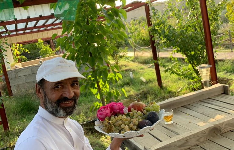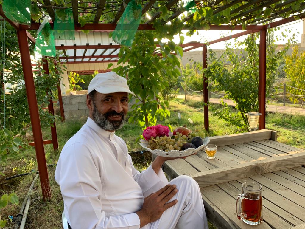 ولا يزال ينتظر موعد نضج ثمار أشجار الليمون والبرتقال والكاكا والبرتقال الملكي ، وتضم مزرعته المتواضعة أكثر من 100 شجرة مثمرة تتنوع بين أشجار العنب والمشمش والخوخ والرمان والتين والتفاح والكمثرى والبخار والجوافة والحمضيات بأنواعها المختلفة ، ويقضي جل وقته متمتعًا بنظارة نموها ونتاج ثمارها ، وقد التقطت له بعض الصور التذكارية مع نتاج قطافه اليومي حامدًا الله وشكرًا له نعمه وفضله .