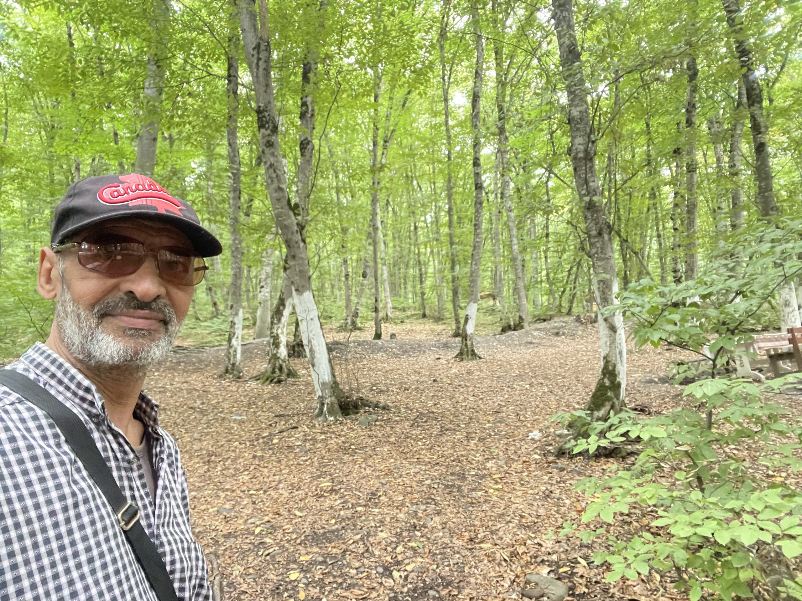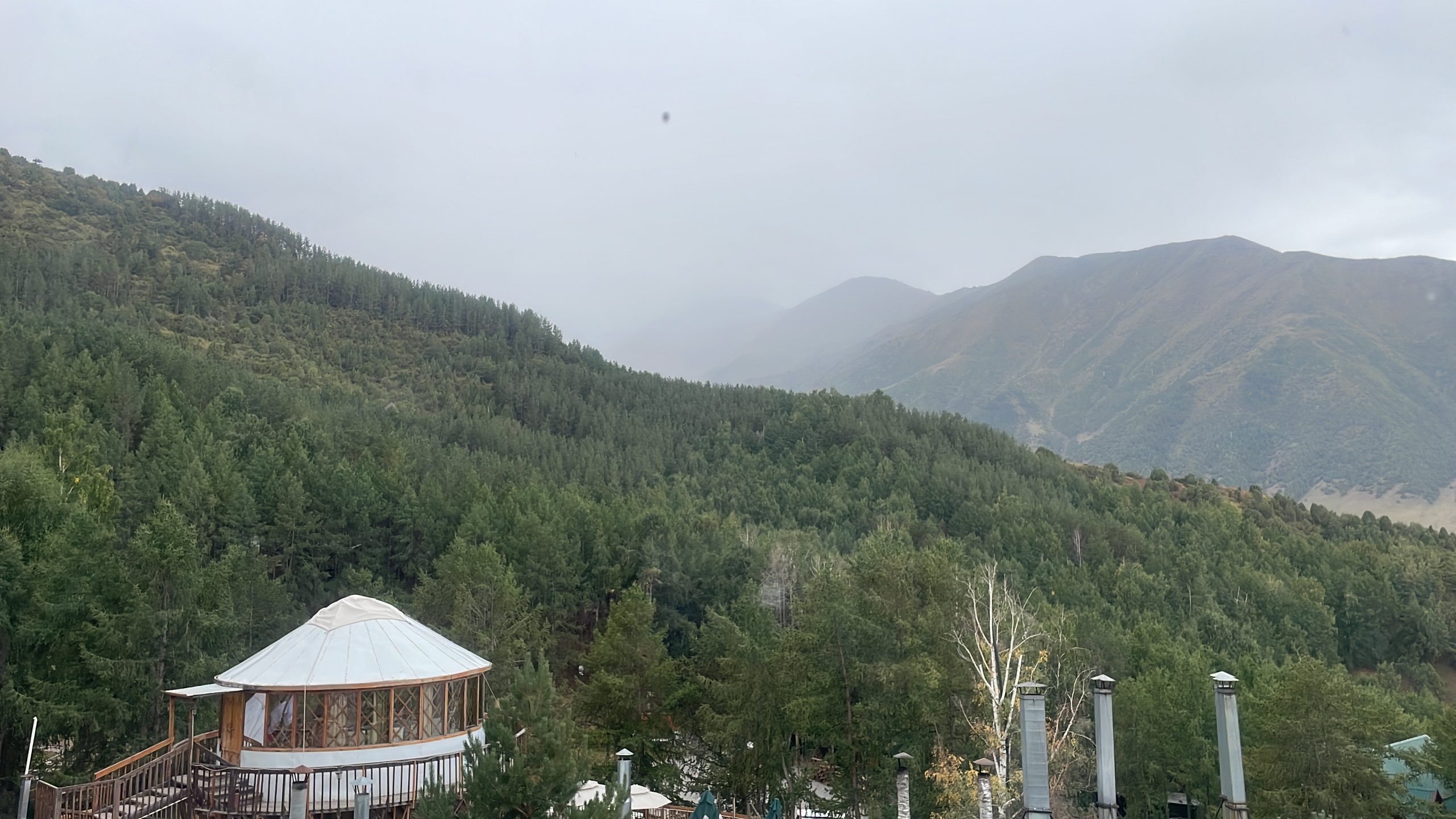 5- الإطلالة الخامسة في رحلتي السياحية لغرغيزستان وأذربيجان، في يوم ماطر والسماء ملبدة بالغيوم ، أضطررت مع هذا الطقس للبقاء في المنتجع ، والتجول حوله في الغابة المحيطة .