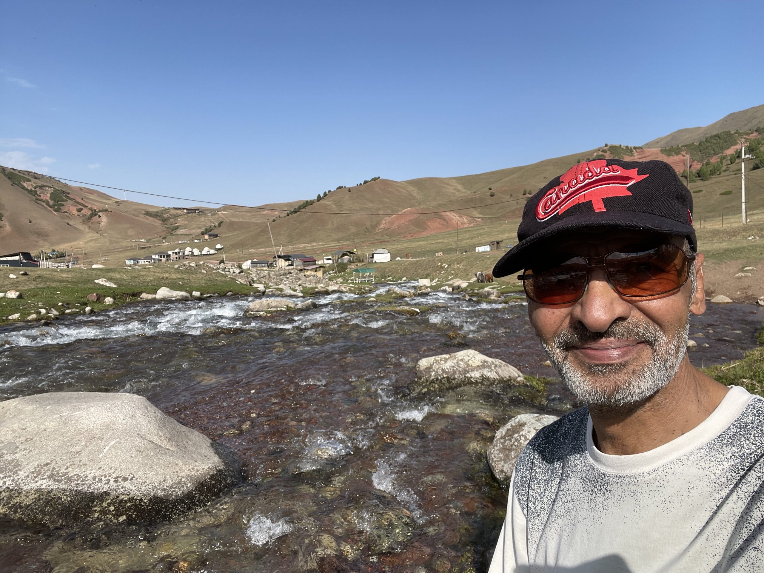 7- الإطلالة السابعة في رحلتي السياحية لغرغيزستان وأذربيجان، من فورونتوسوفسكوي جنوب بشكيك في جبال غرغيزيا ، في محيط المنتجع الجبلي على ضفاف النهر .