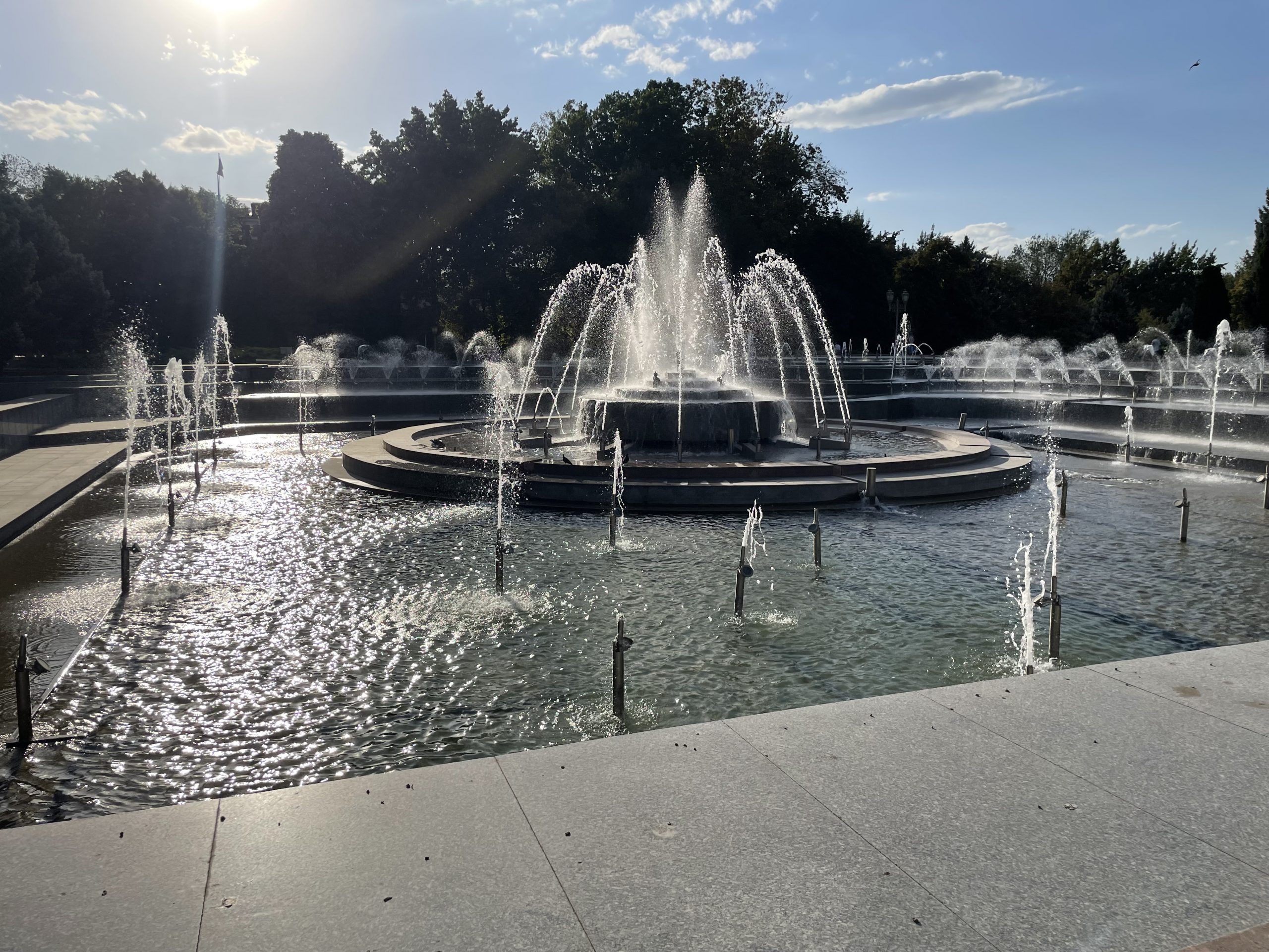 8- الإطلالة الثامنة في رحلتي السياحية لغرغيزستان وأذربيجان، من حدائق البلوط تشنقيز أيتماتوف وسط بشكيك ، والأجواء صافية والقليل من السواح الأجانب .