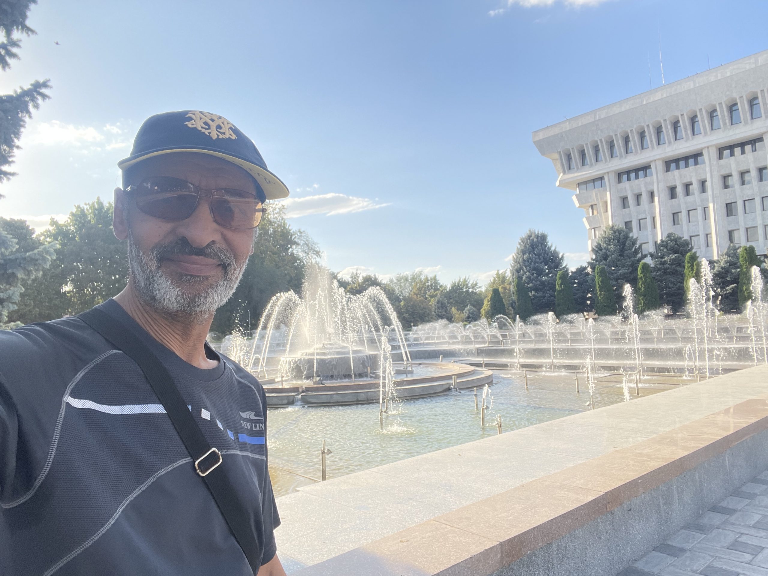 1- الإطلالة الأولى في رحلتي السياحية لغرغيزسان وأذربيجان من إحدى المولات الحديثة بالعاصمة الغرغيزية بشكيك ، والأجواء معتدلة وصافية والقليل من السواح الأجانب .