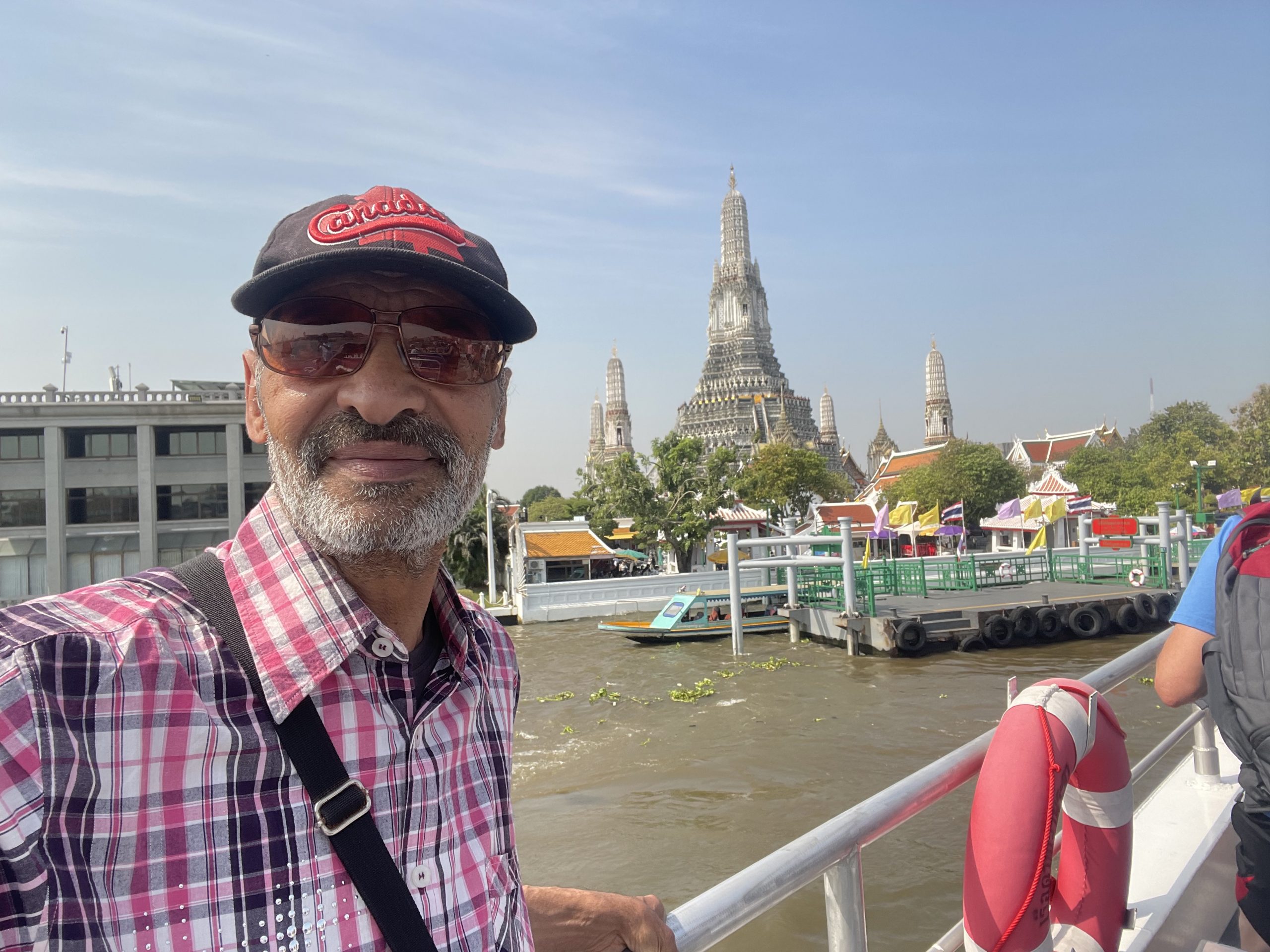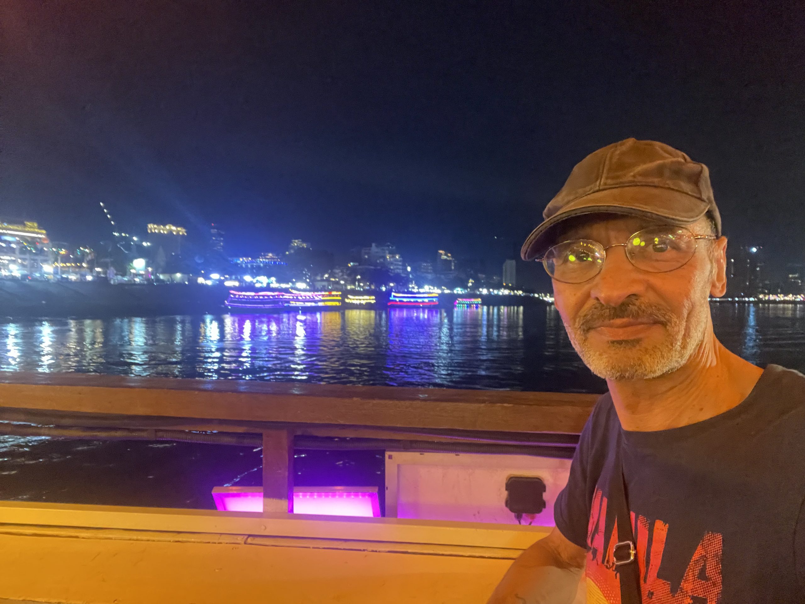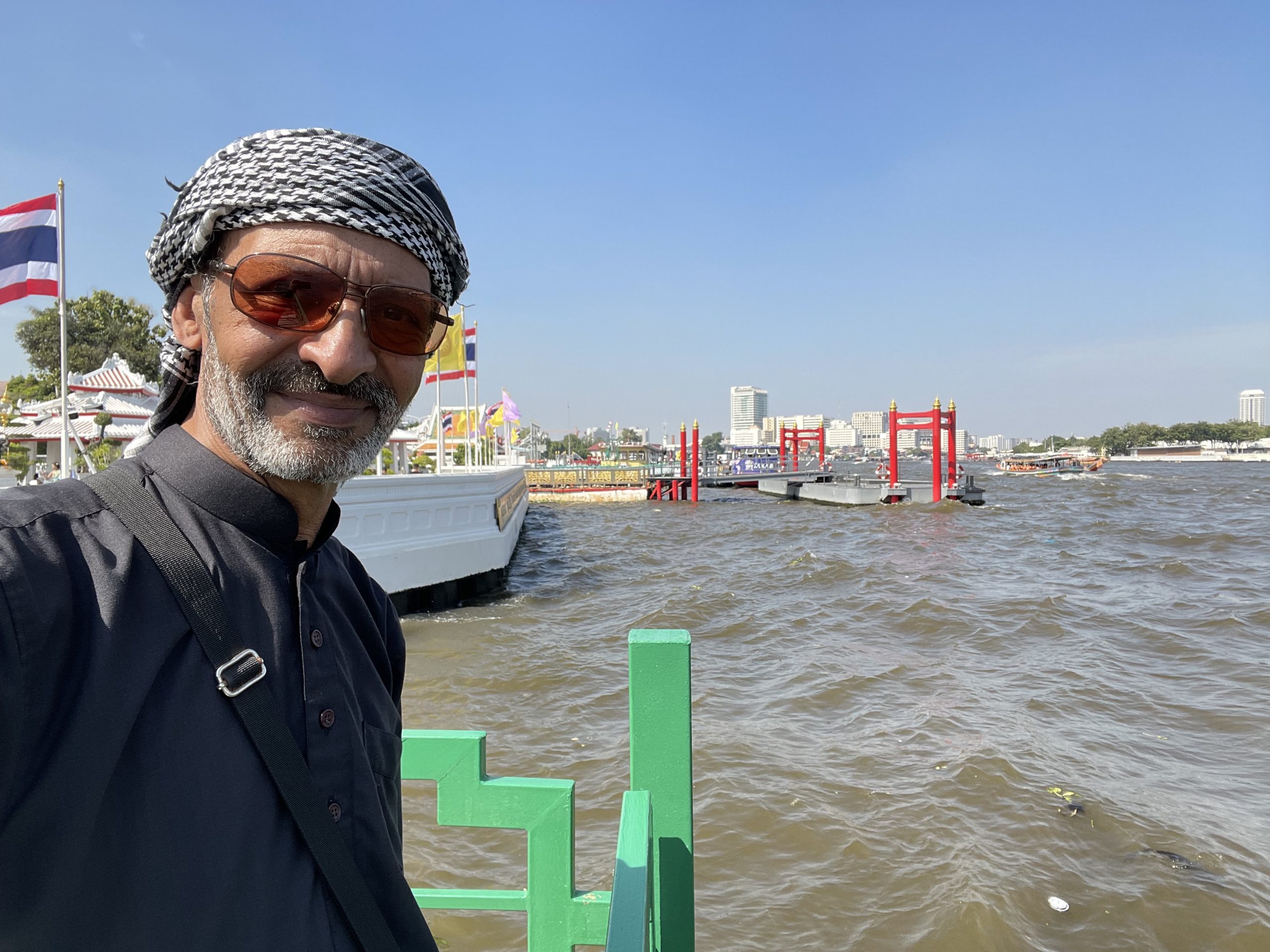 الإطلالة الرابعة عشرة ، جولة سياحية في إحدى القوارب السياحية على نهر تشاو فرايا بعد العودة من كمبوديا إلى بانكوك في ختام رحلتي السياحية وهي ليست المرة الأولى التي استقل فيها قارب في جولة على المعالم السياحية على ضفاف النهر لكنها فريدة.