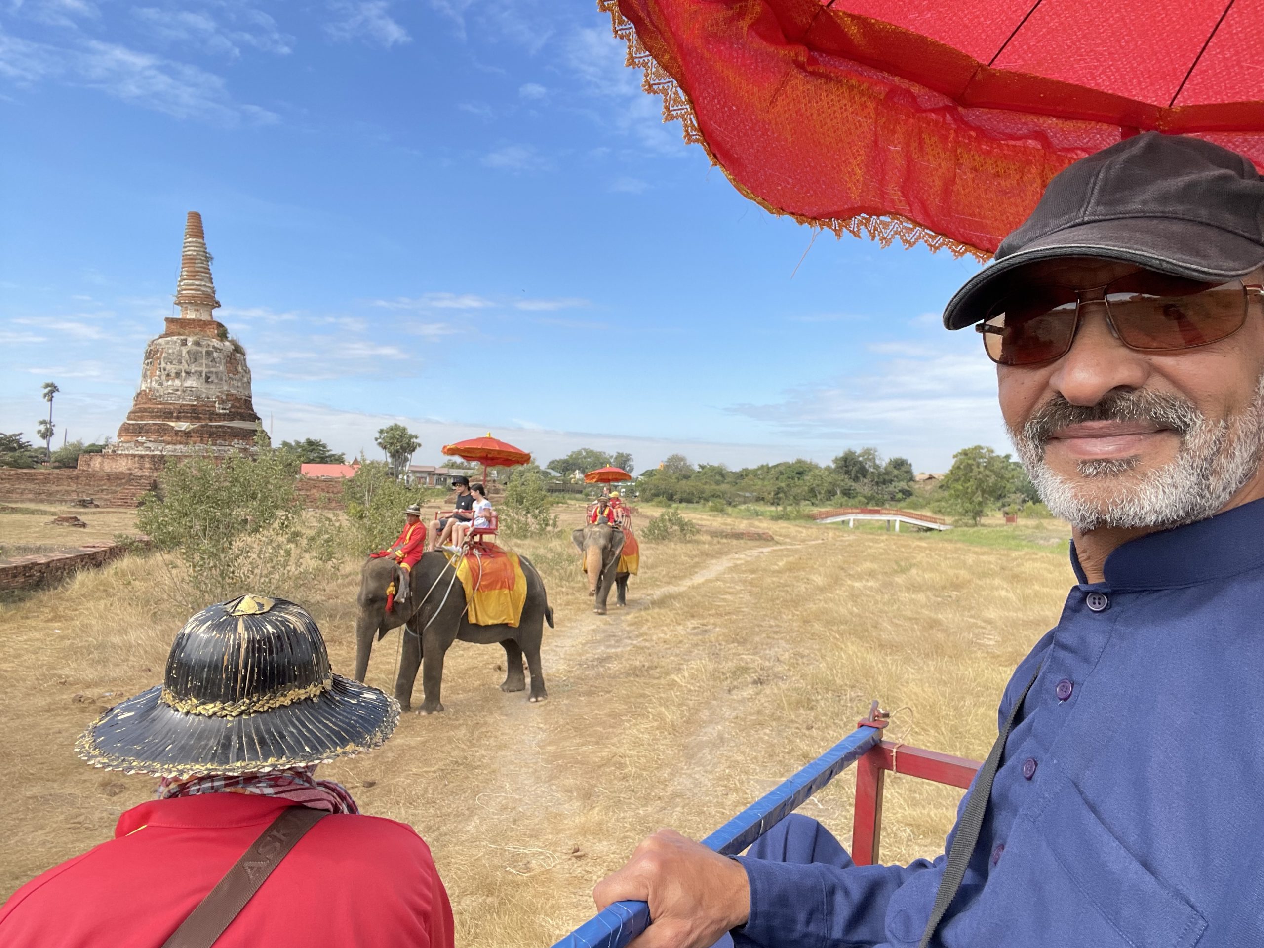 الإطلالة الثالثة ، جولة سياحية في مدينة آيوتايا التراثية القريبة من العاصمة التايلندية وجولة فيها على أبرز المعالم السياحية من المعابد التاريخية وركوب الفيلة .