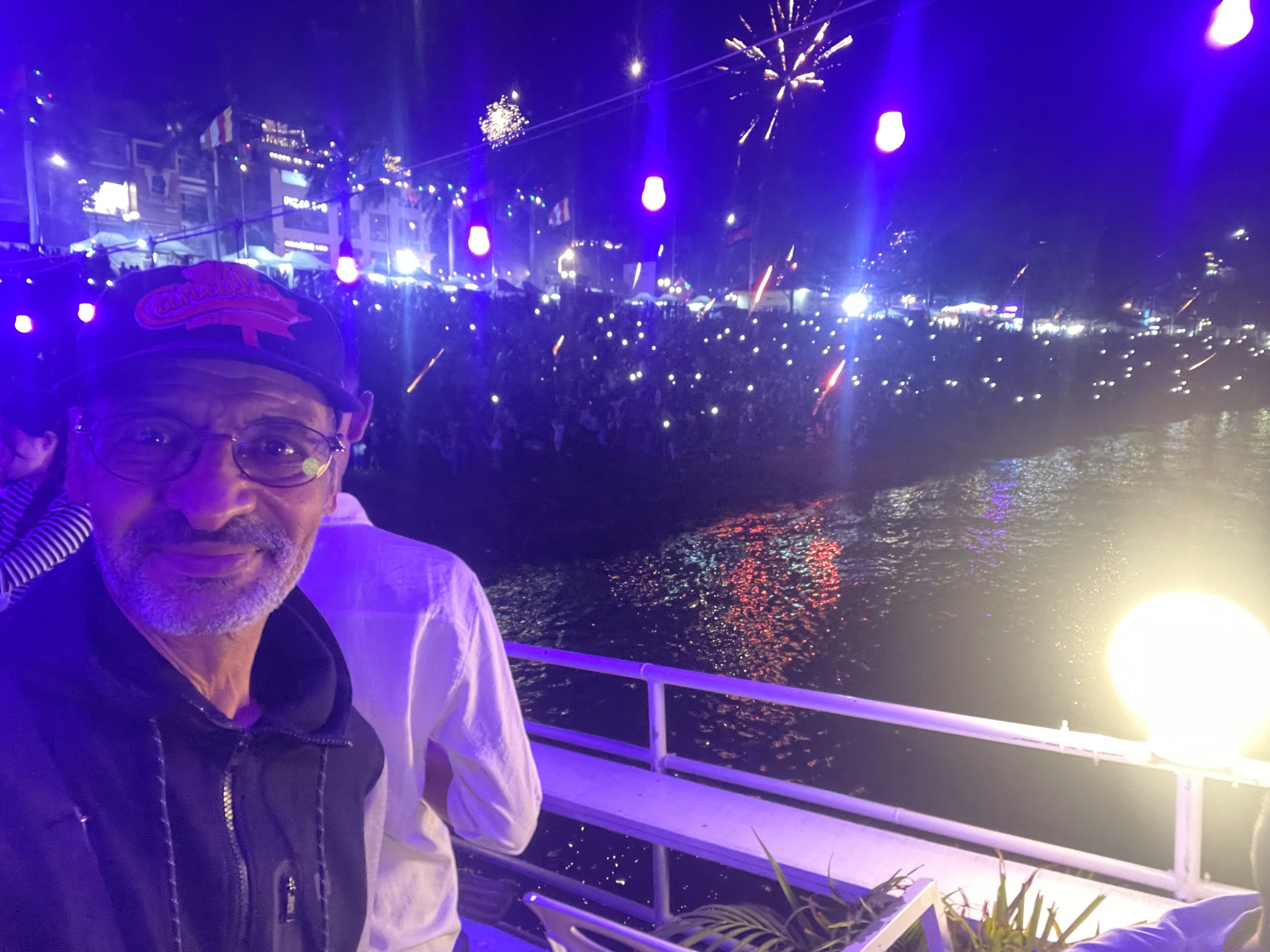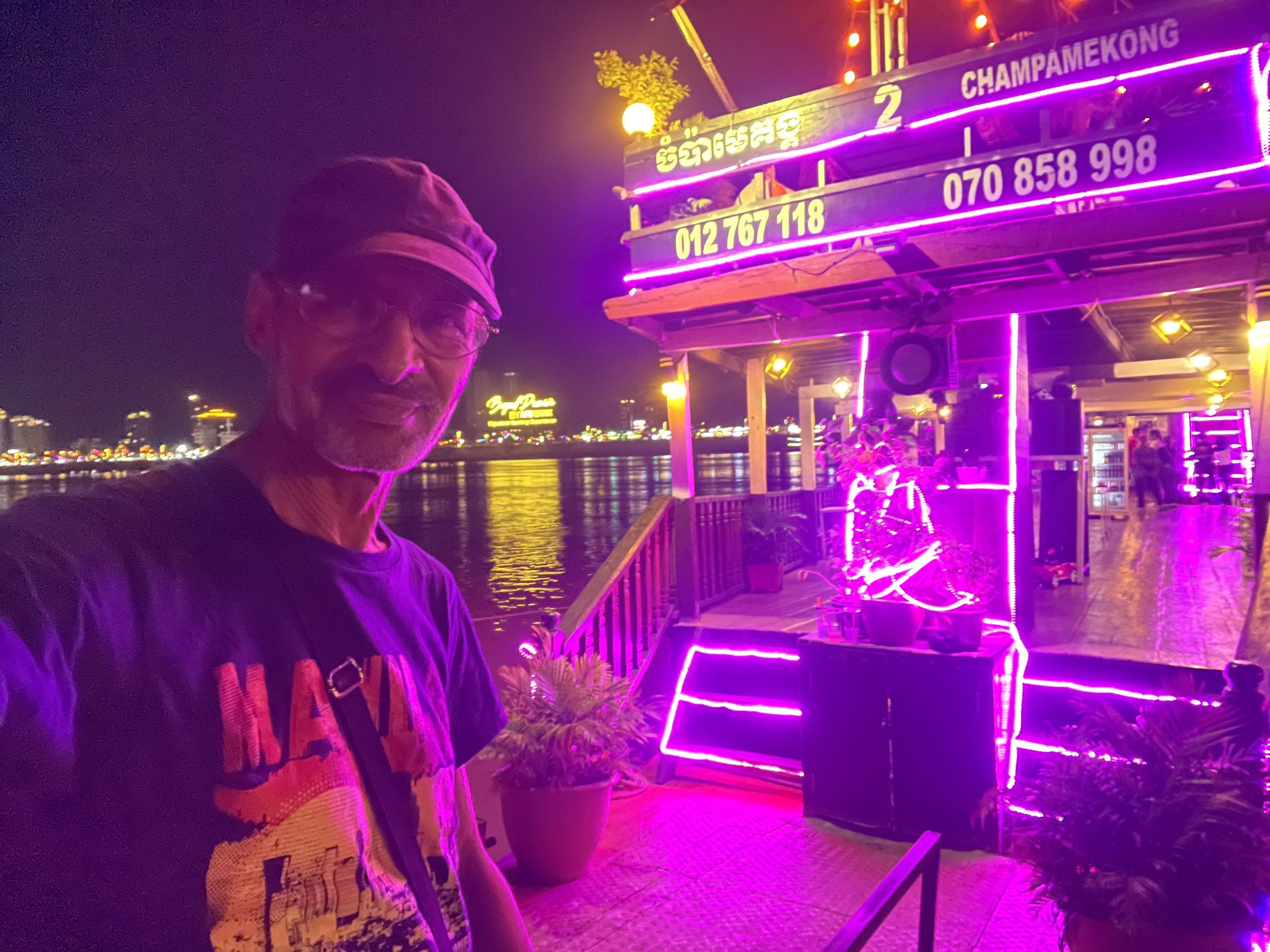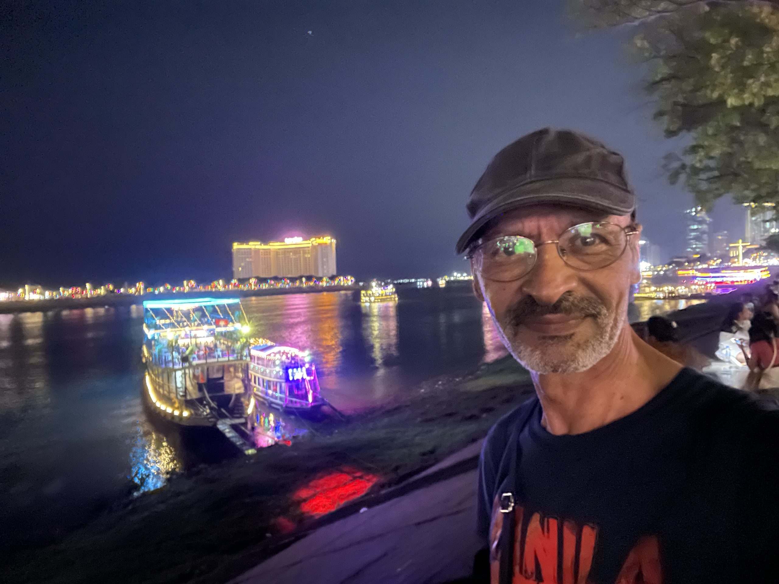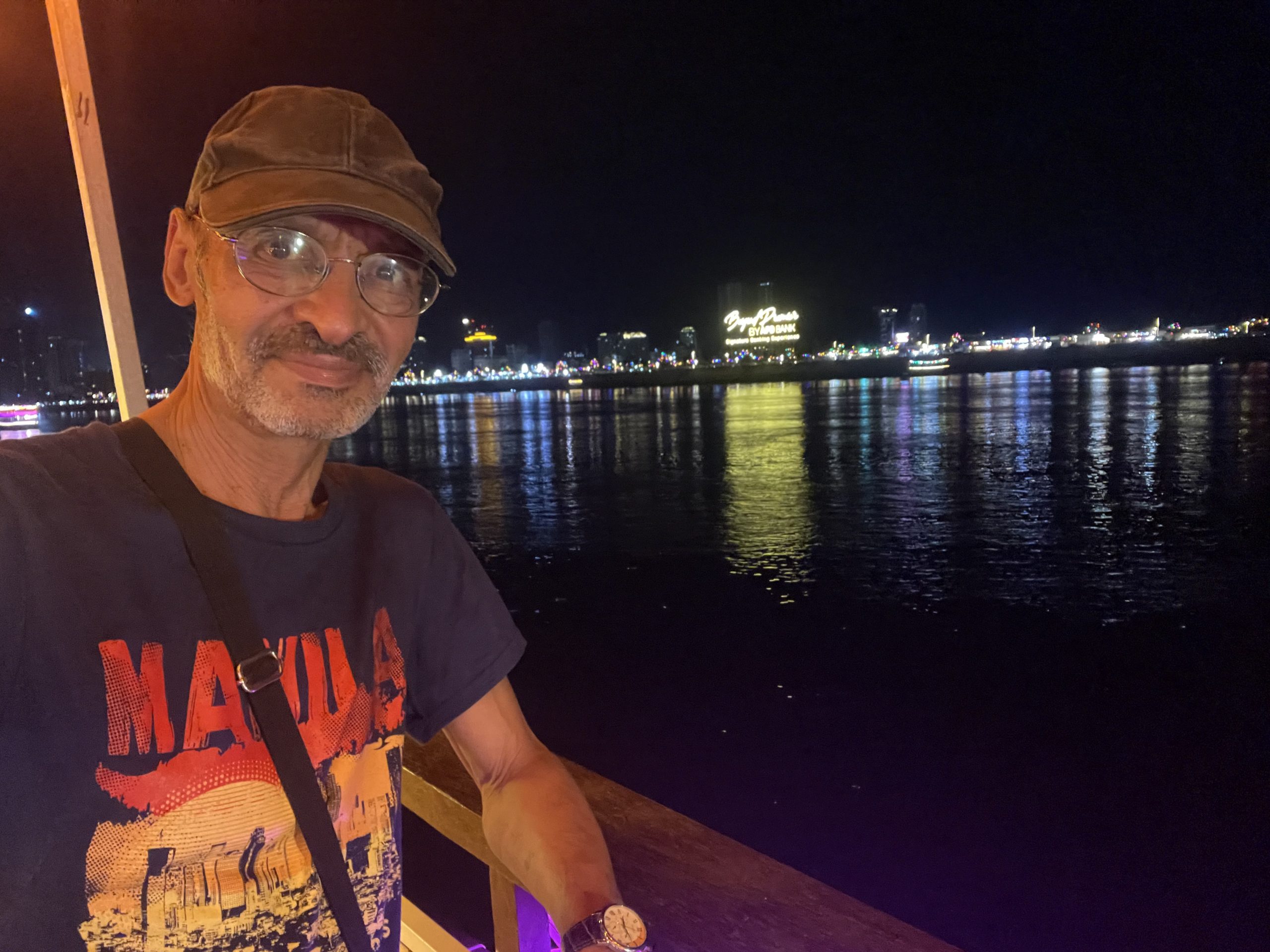 الإطلالة السابعة ، من على كروز سياحي في ليلة حالمة بالعاصمة الكمبودية بنوم بنه وجولة فيو على نهر ميكونغ الذي تقع عليه المثير من المعالم السياحية والتجارية .