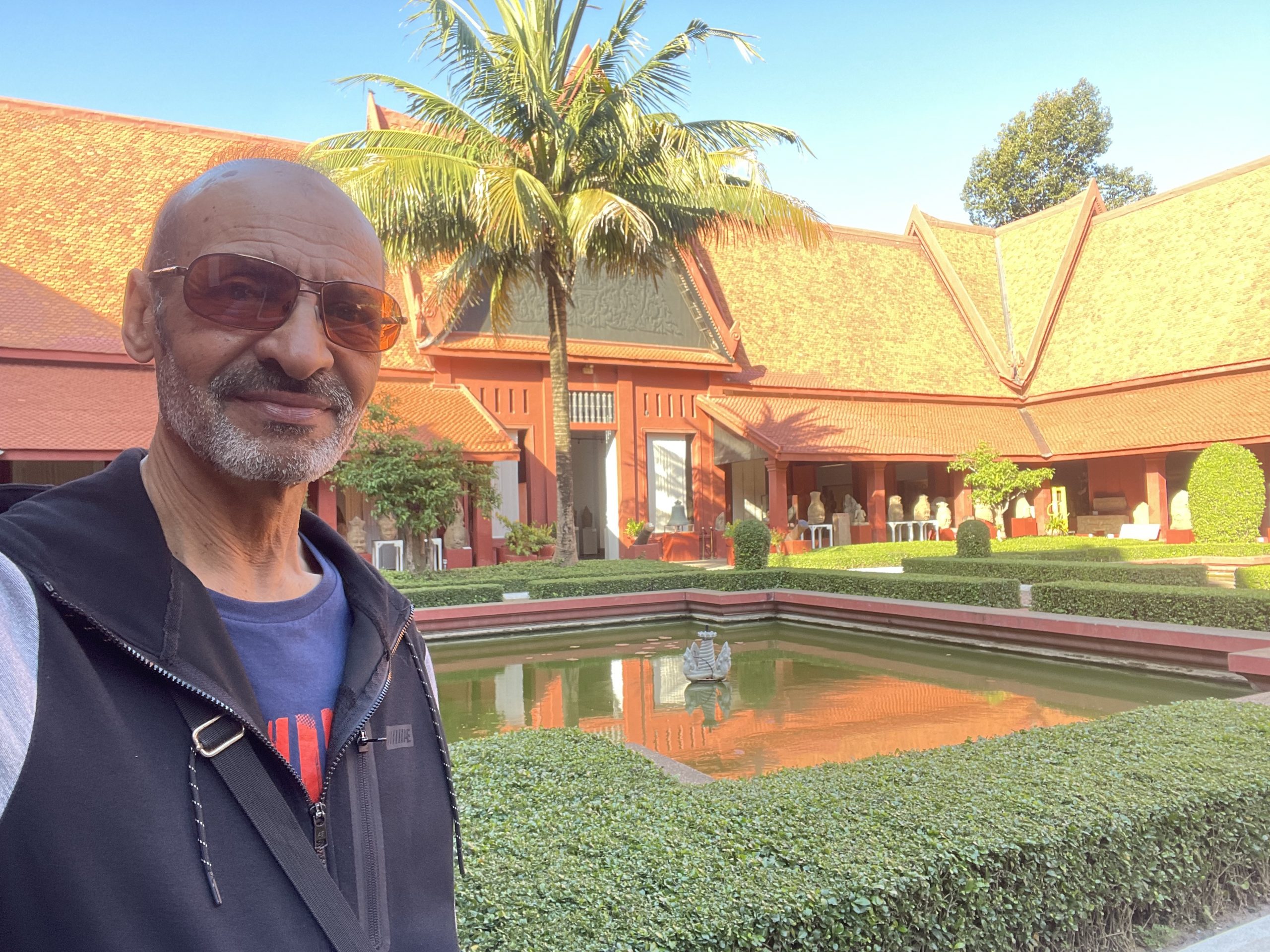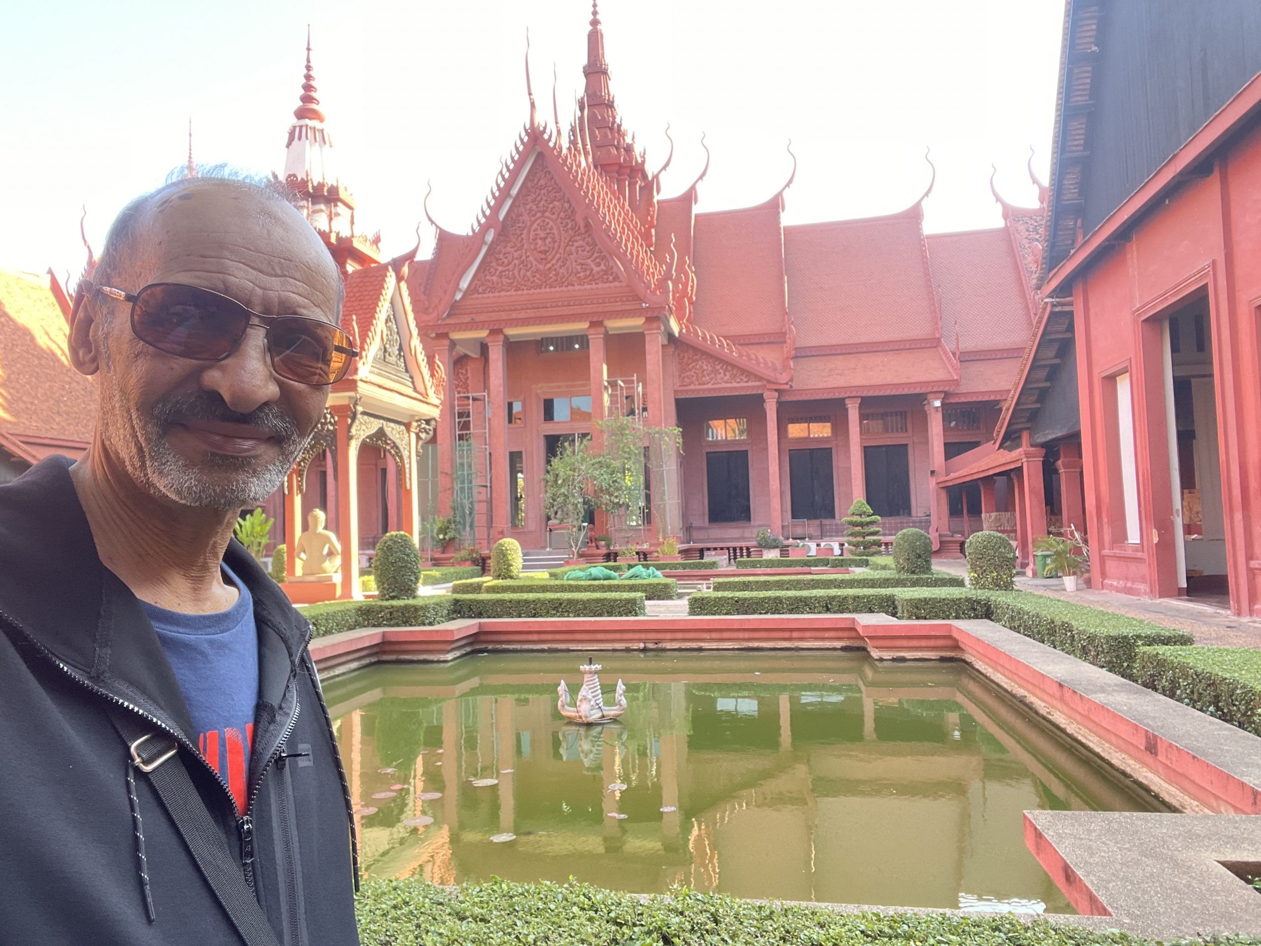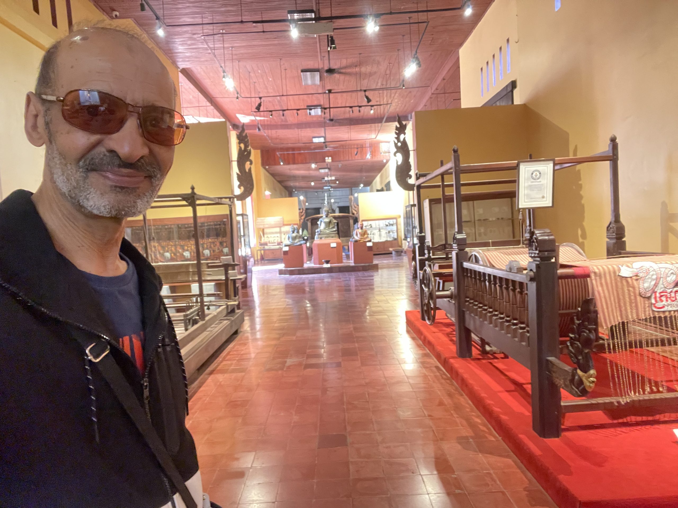 الإطلالة الثامنة ، جولة سياحية على القصر الملكي في وسط مدينة بيوم بنه عاصمة كمبوديا وما احتوى عليه من القطع الأثرية المتنوعة وزيارة بعض القصور والمعابد المجاورة .