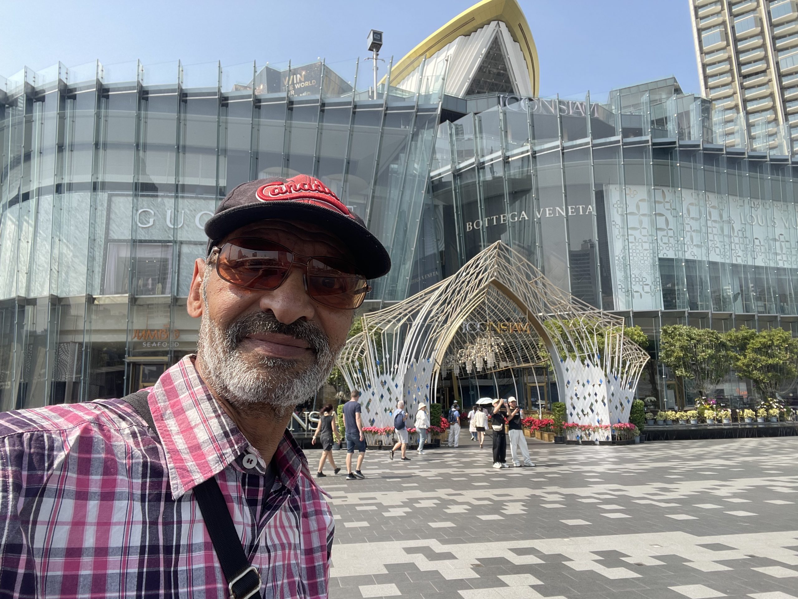 الإطلالة الخامسة عشرة والأخيرة قبل عودتي إلى الوطن العزيز ، من مركز أيكون سيام ببانكوك وهو من المراكز الشهيرة التي يقبل عليها السواح من جميع دول العالم ويمكن الوصول إليه عن طريق الباص النهري الذي يطوف بأشهر المعالم السياحية على نهر تشاو فرايا.