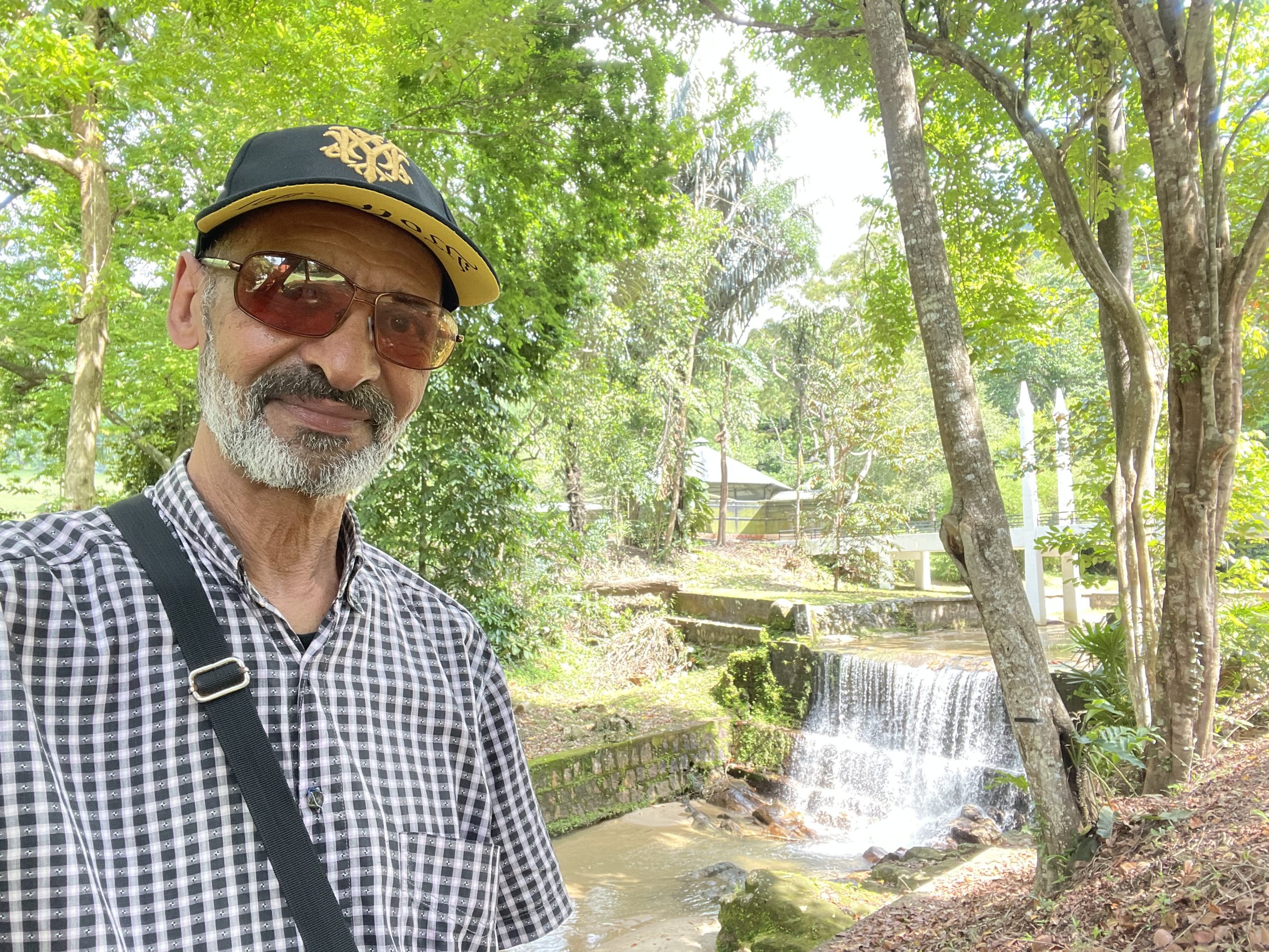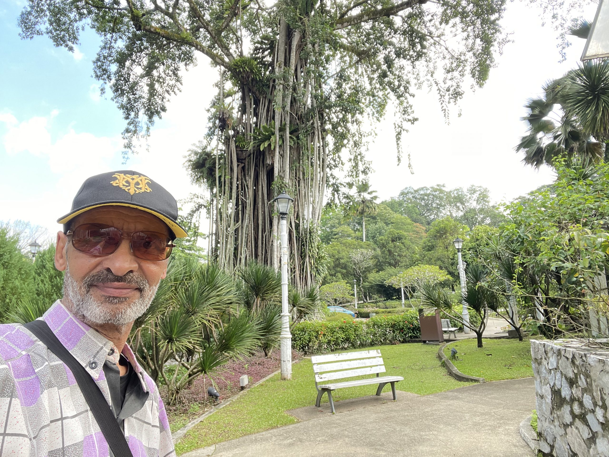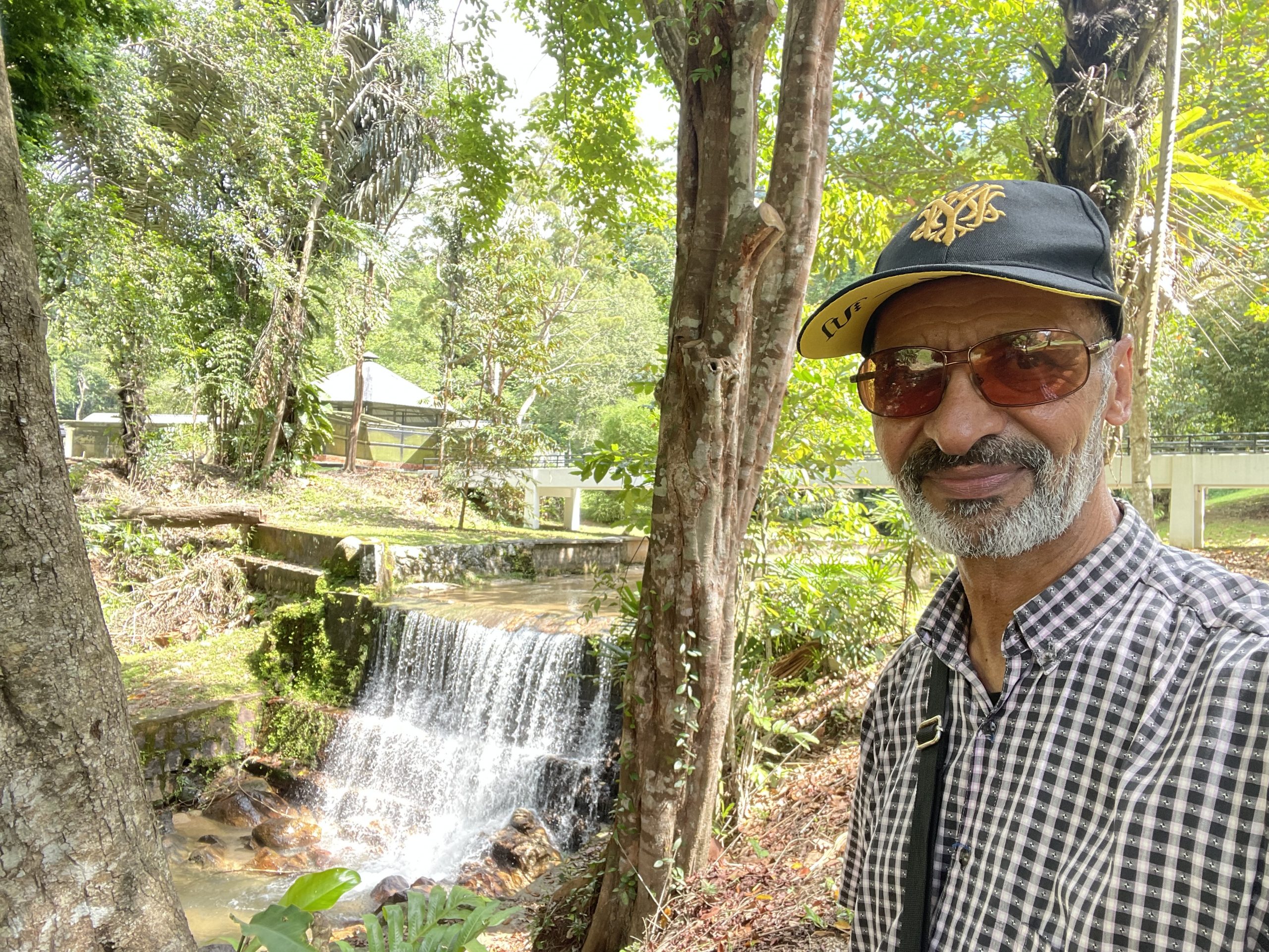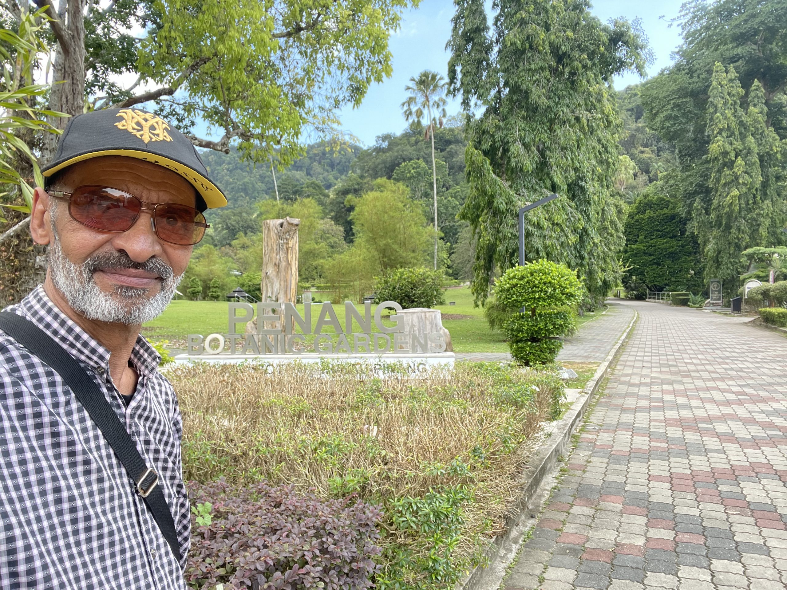 14- الإطلالة الرابعة عشرة من الحديقة النباتية في بينانج حيث التنوع في الأشجار والزهور والنباتات الاستوائية والمياه الجارية والشلالات في جو شبه غائم وقد يتحول إلى ممطر بإذن الله تعالى .