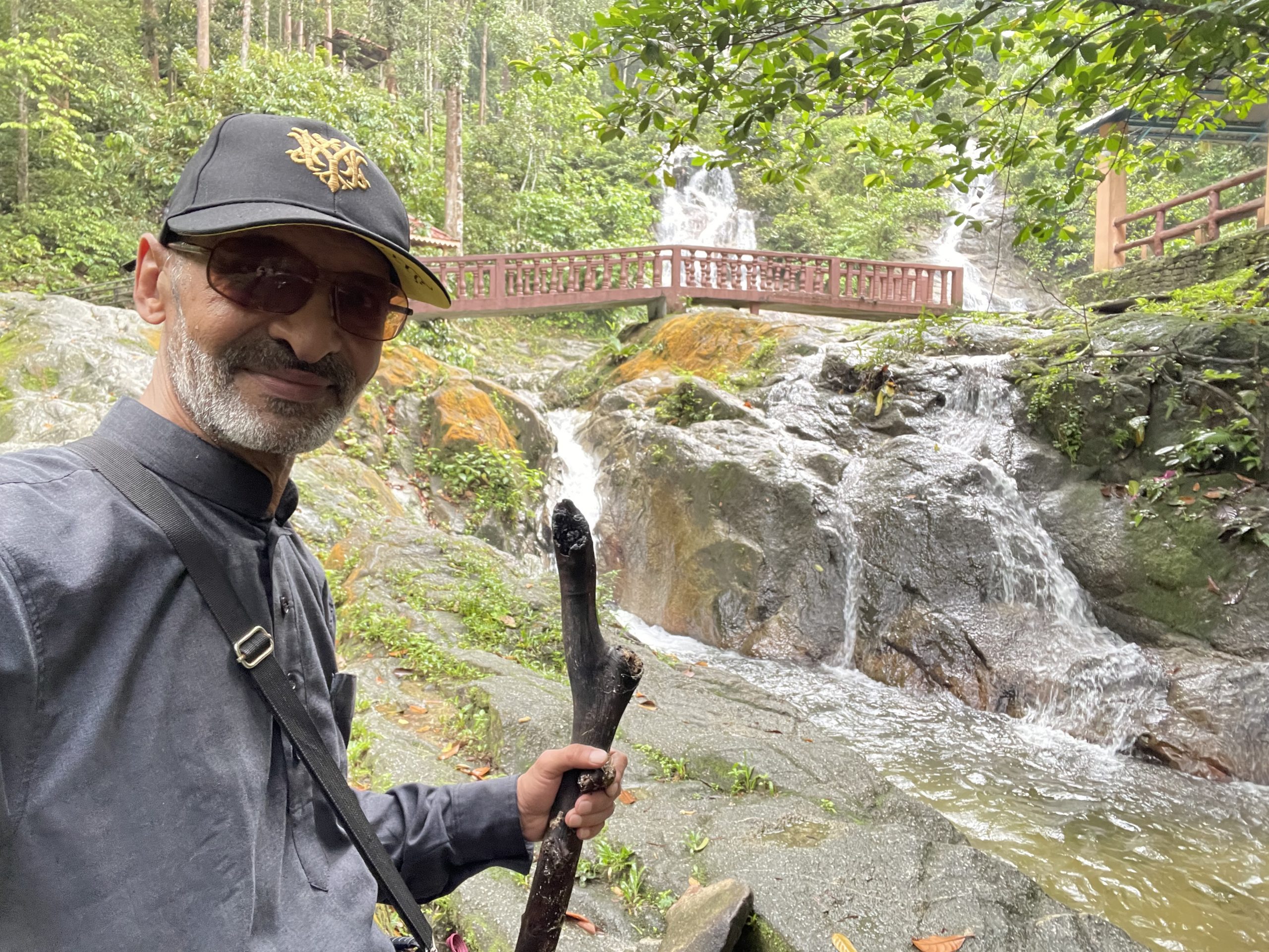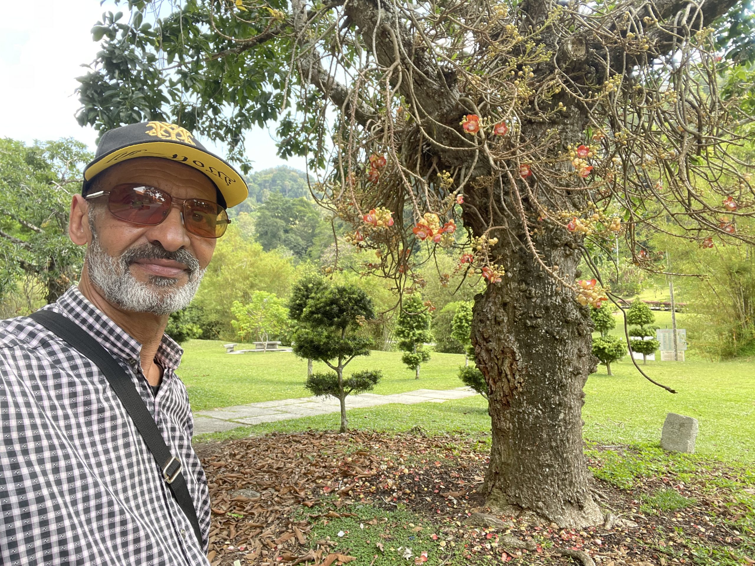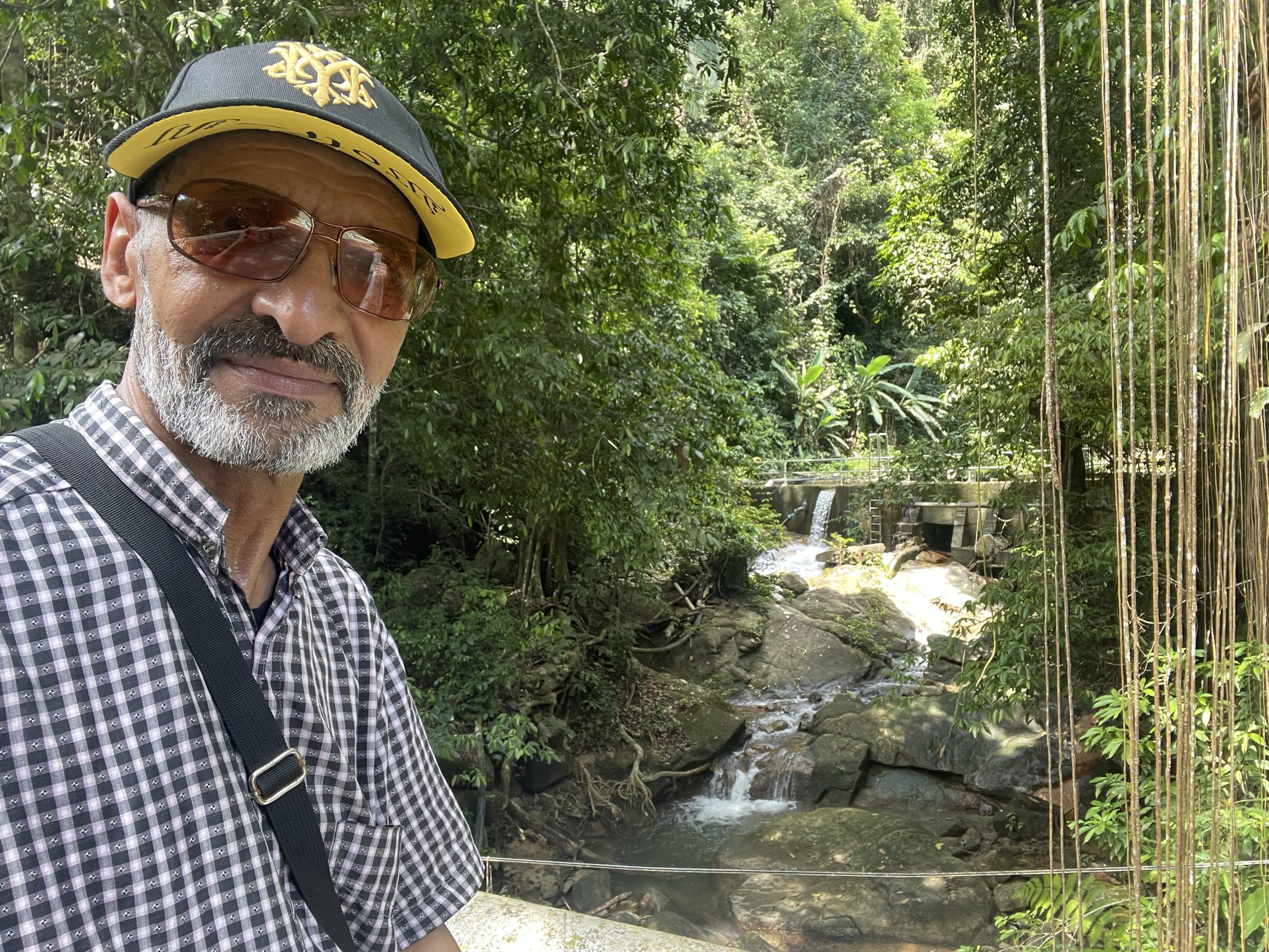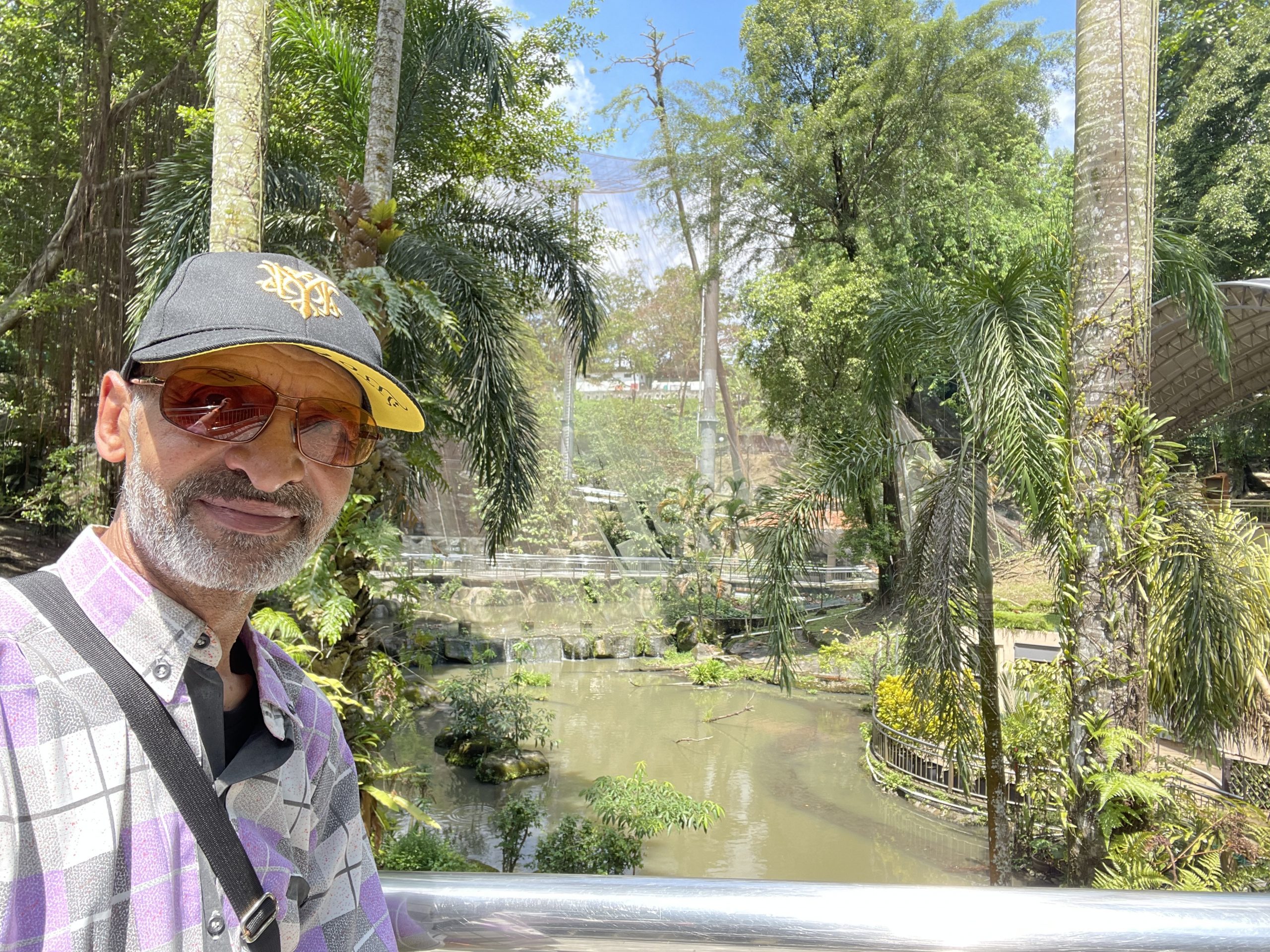 14- الإطلالة الرابعة عشرة من الحديقة النباتية في بينانج حيث التنوع في الأشجار والزهور والنباتات الاستوائية والمياه الجارية والشلالات في جو شبه غائم وقد يتحول إلى ممطر بإذن الله تعالى .