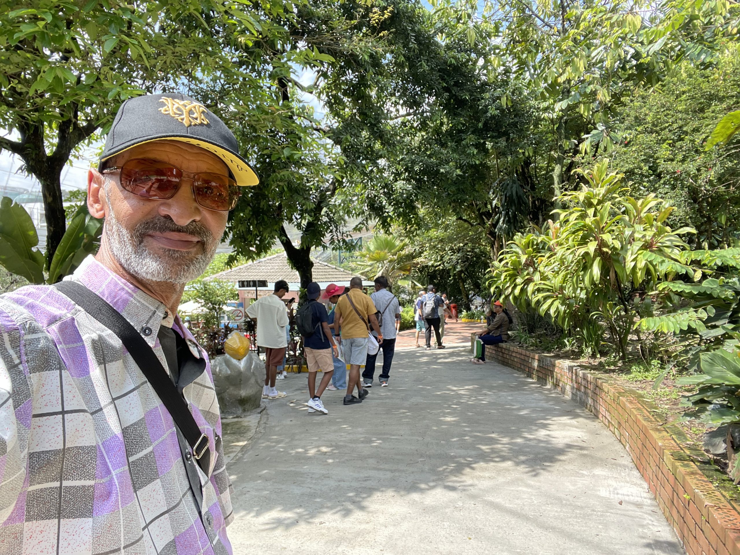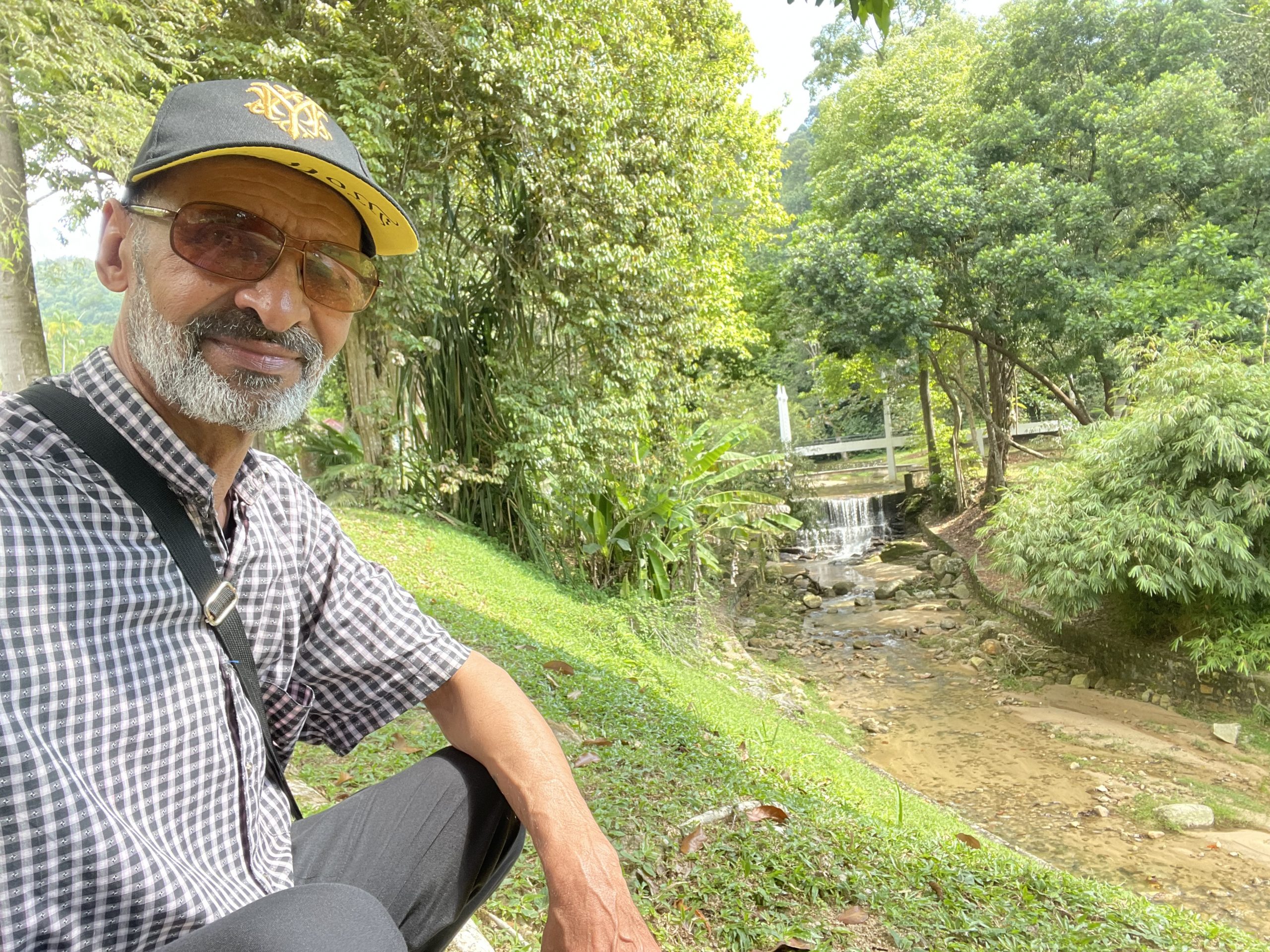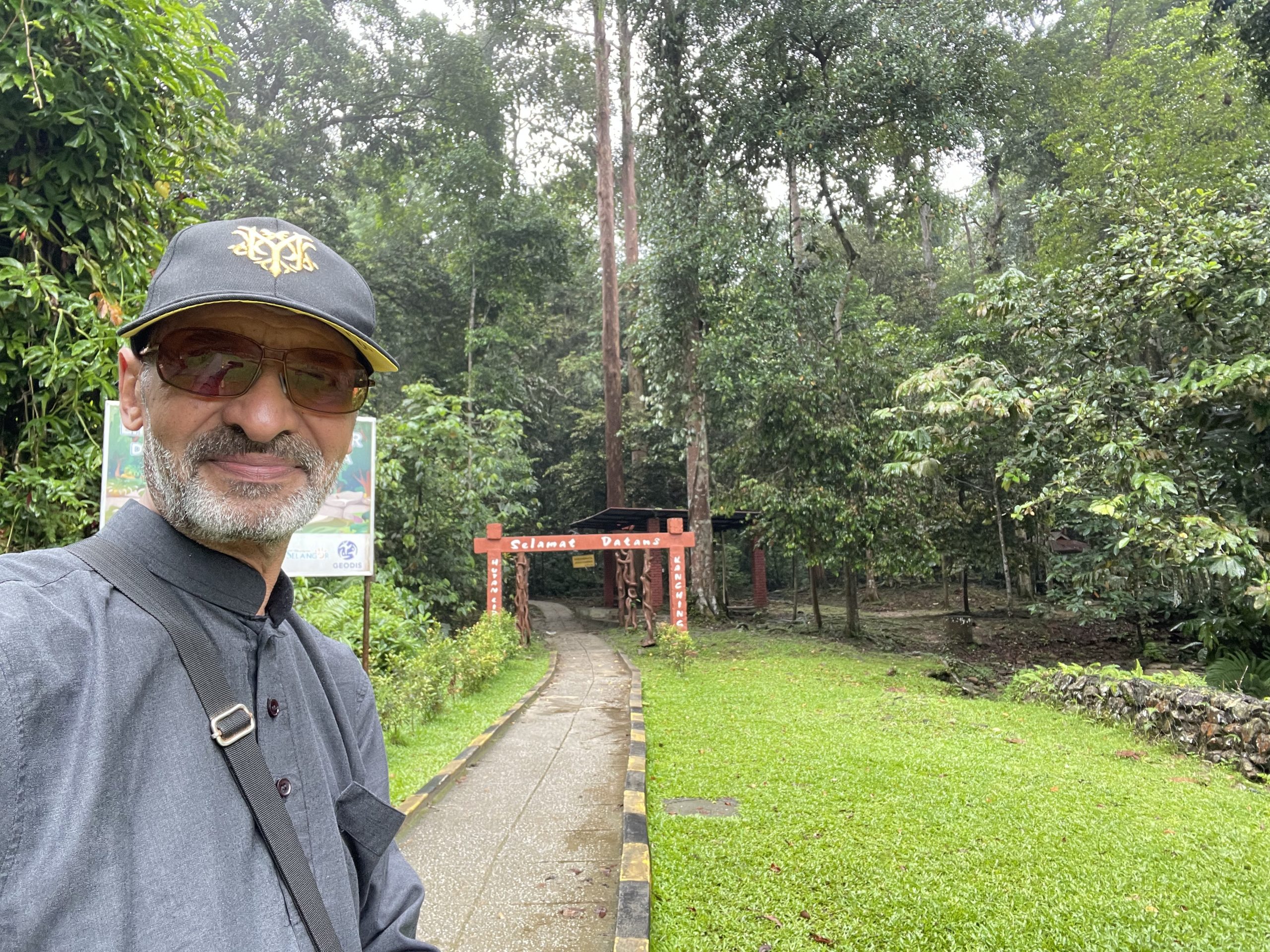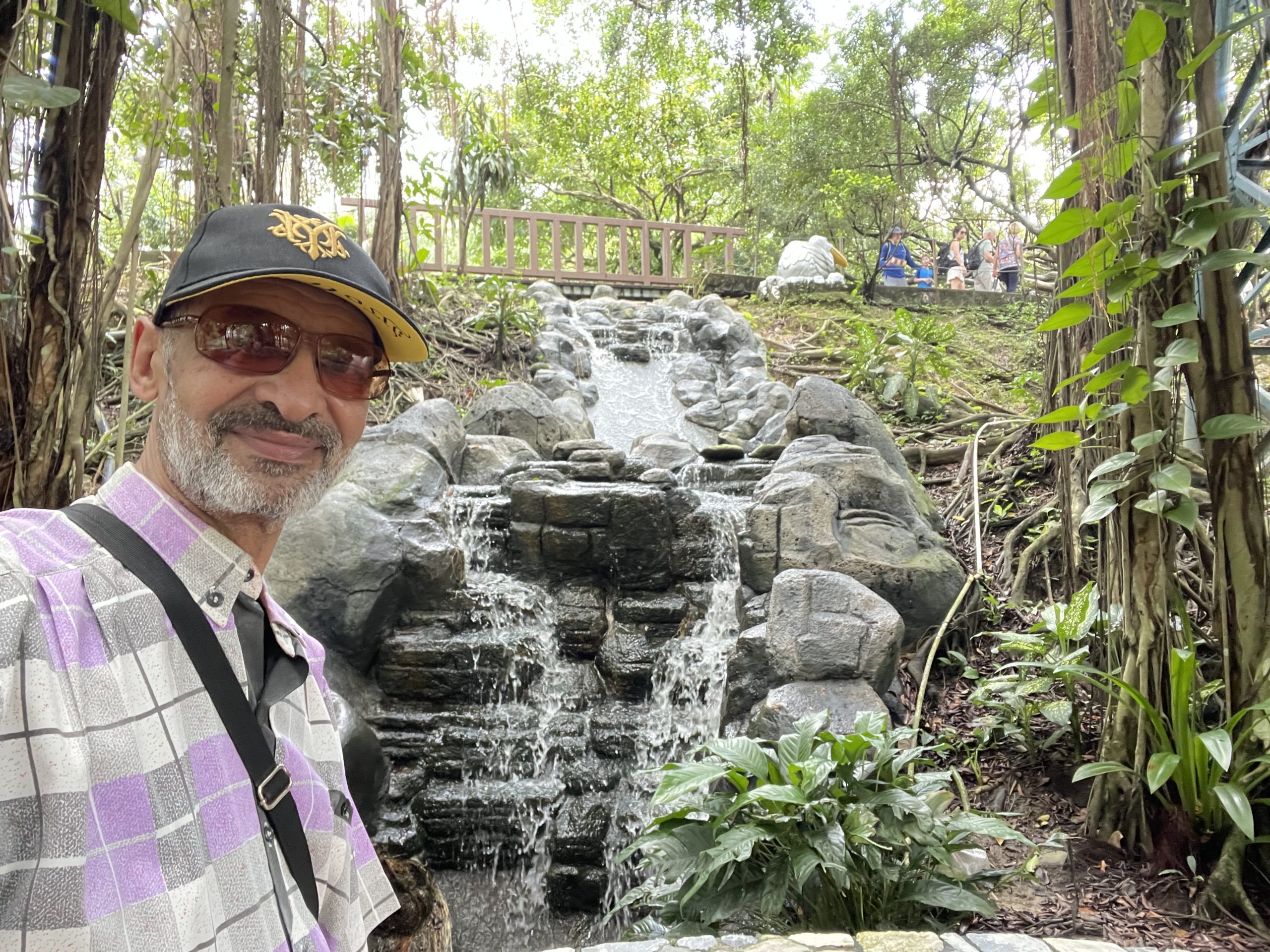 14- الإطلالة الرابعة عشرة من الحديقة النباتية في بينانج حيث التنوع في الأشجار والزهور والنباتات الاستوائية والمياه الجارية والشلالات في جو شبه غائم وقد يتحول إلى ممطر بإذن الله تعالى .
