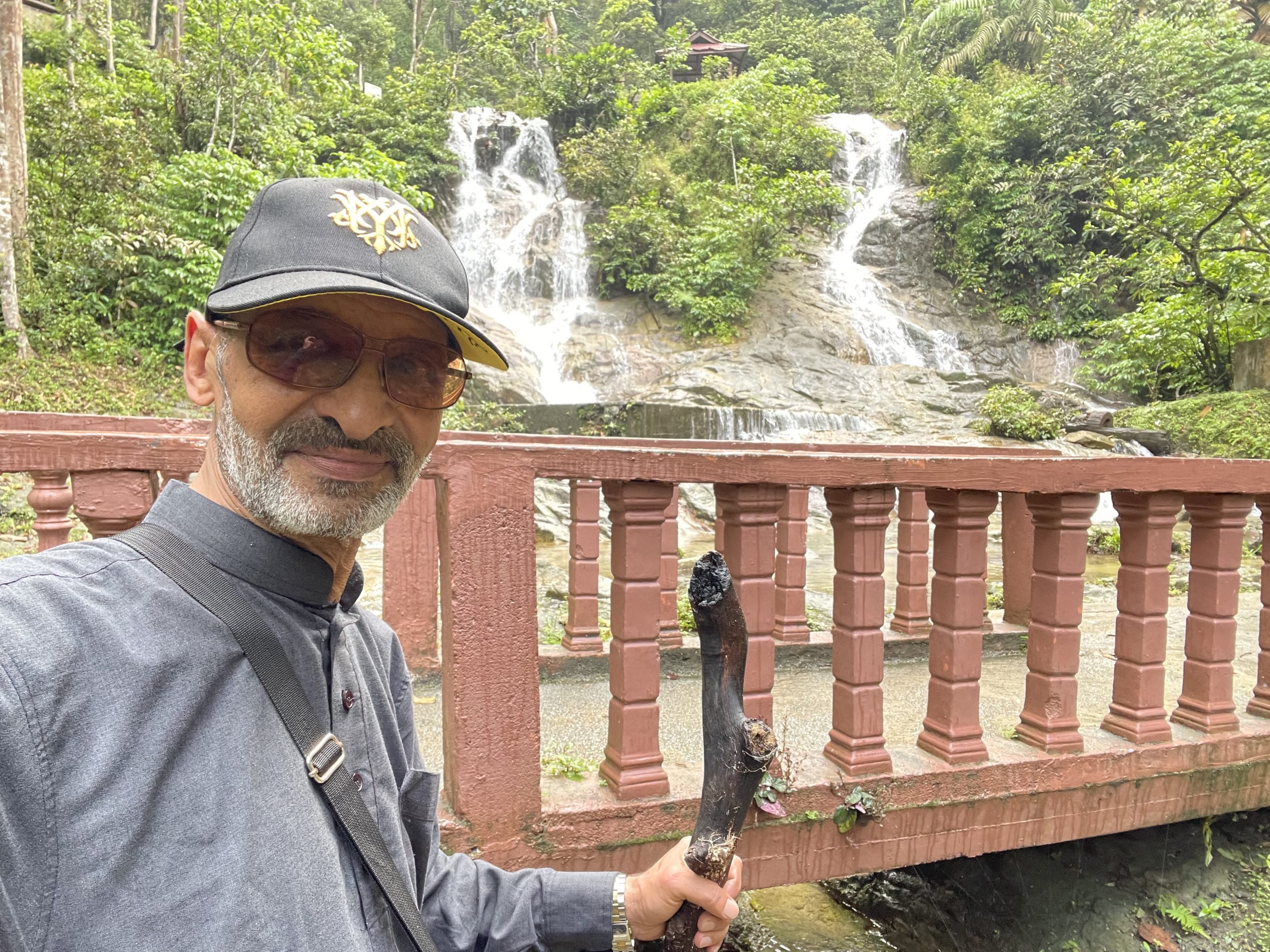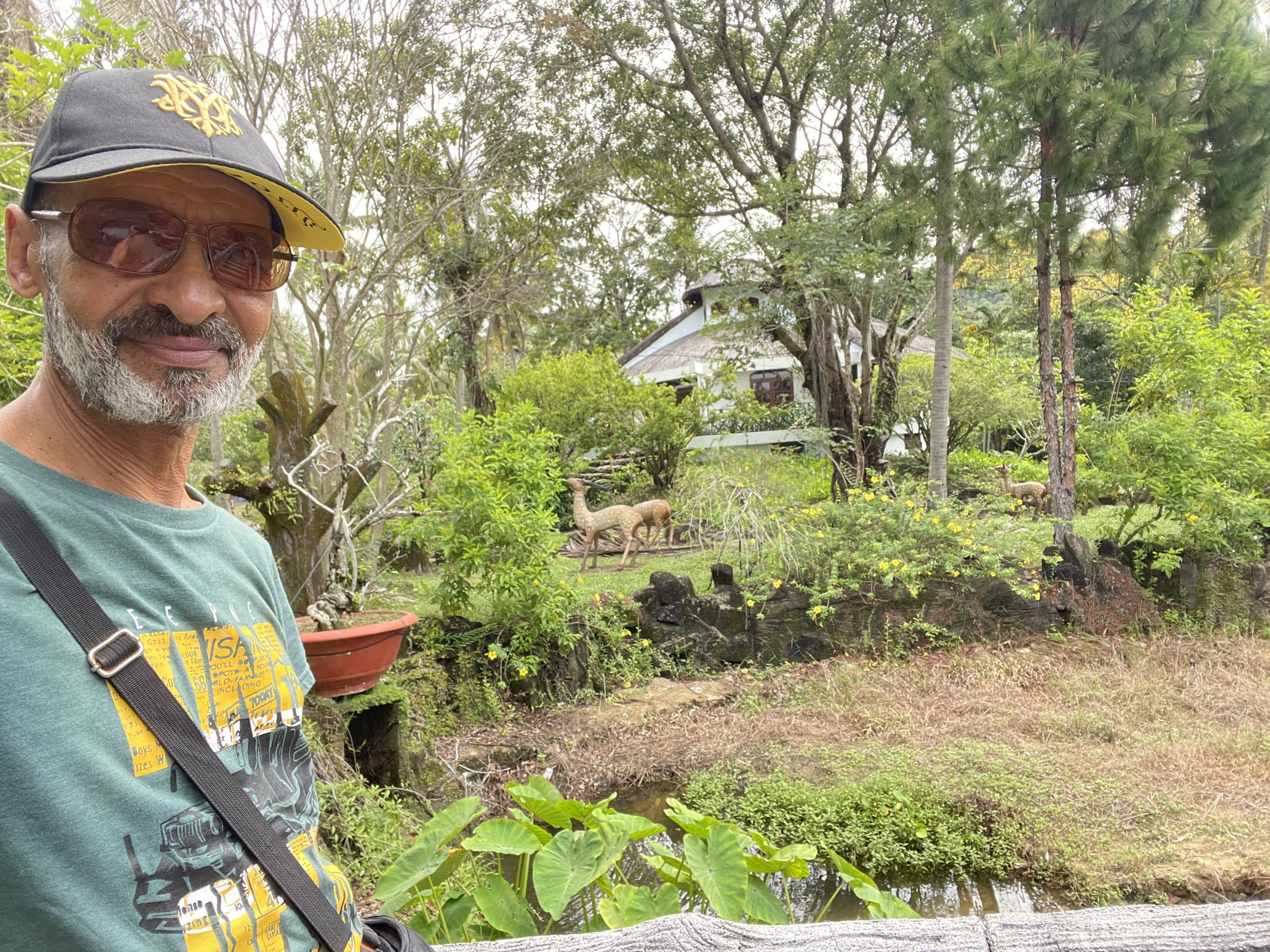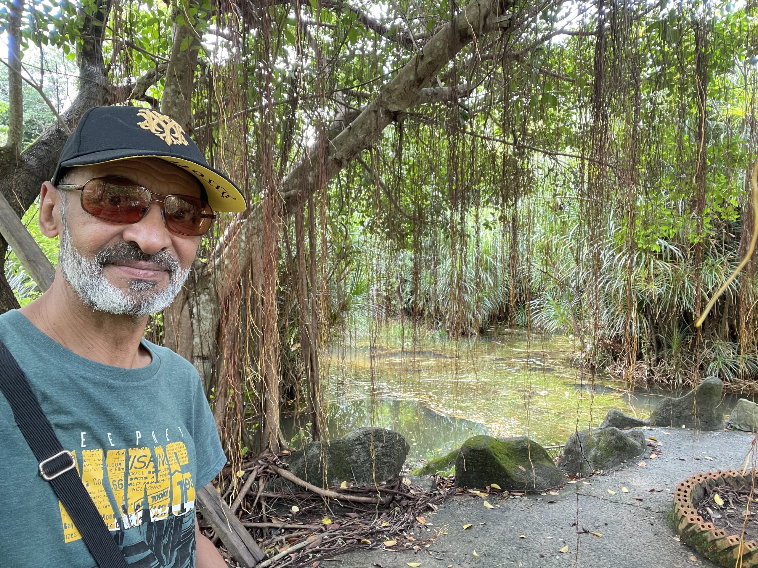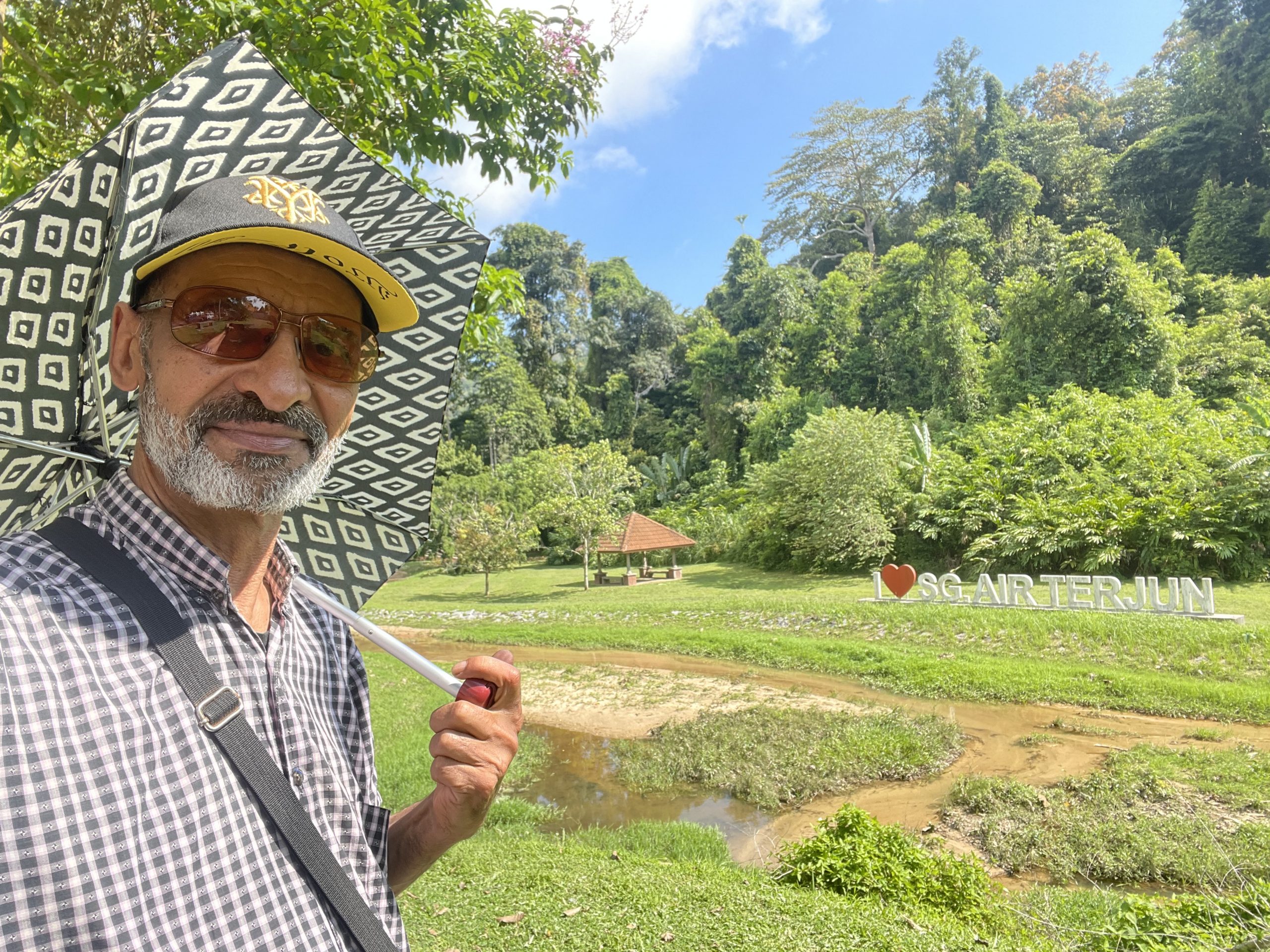 14- الإطلالة الرابعة عشرة من الحديقة النباتية في بينانج حيث التنوع في الأشجار والزهور والنباتات الاستوائية والمياه الجارية والشلالات في جو شبه غائم وقد يتحول إلى ممطر بإذن الله تعالى .