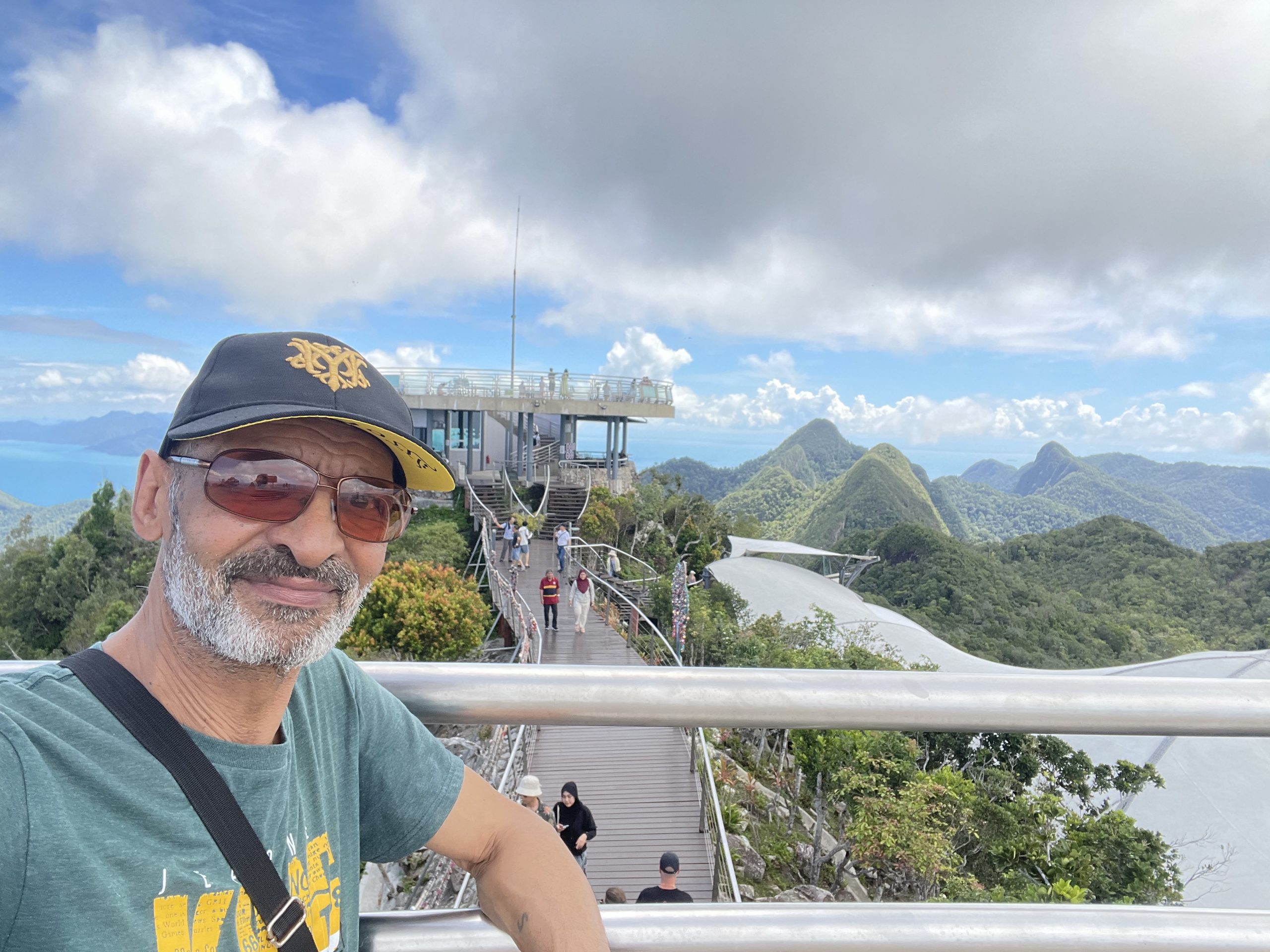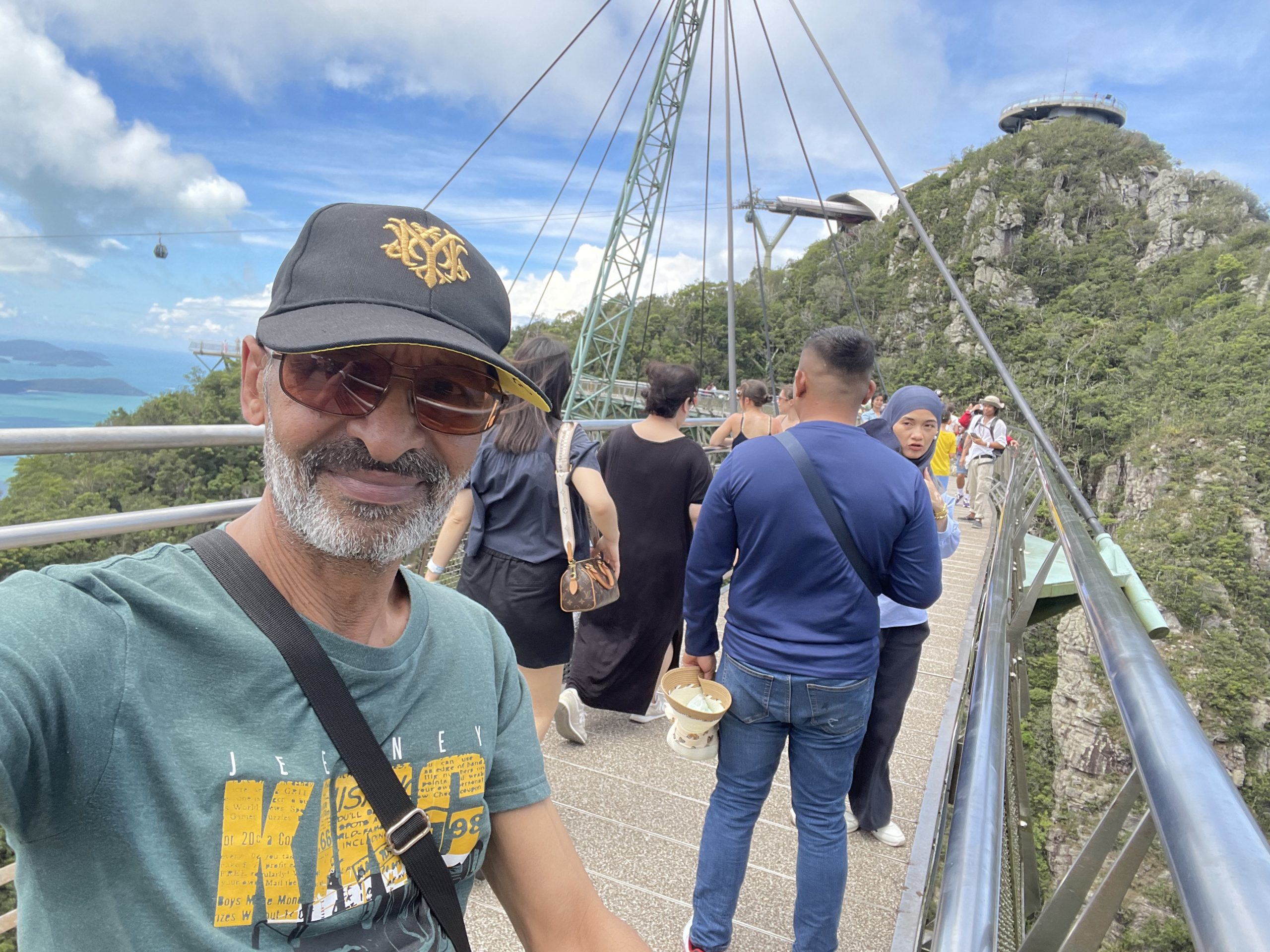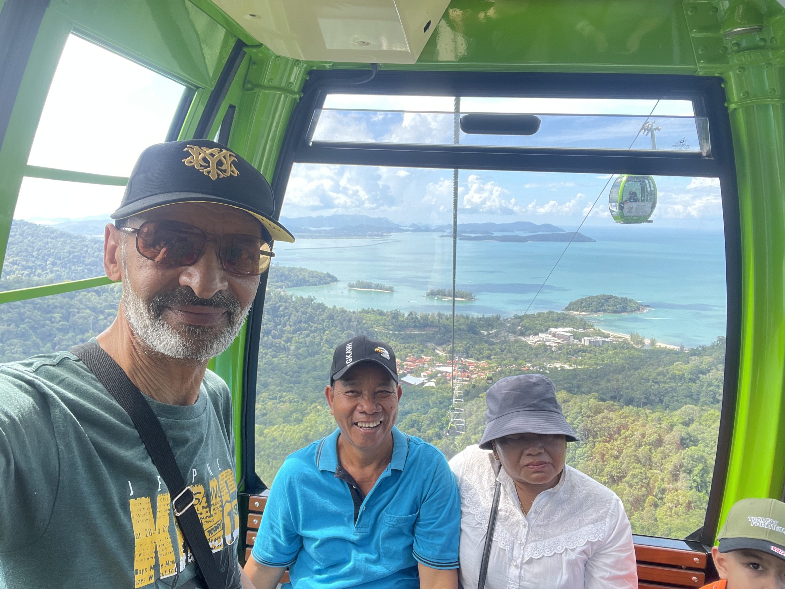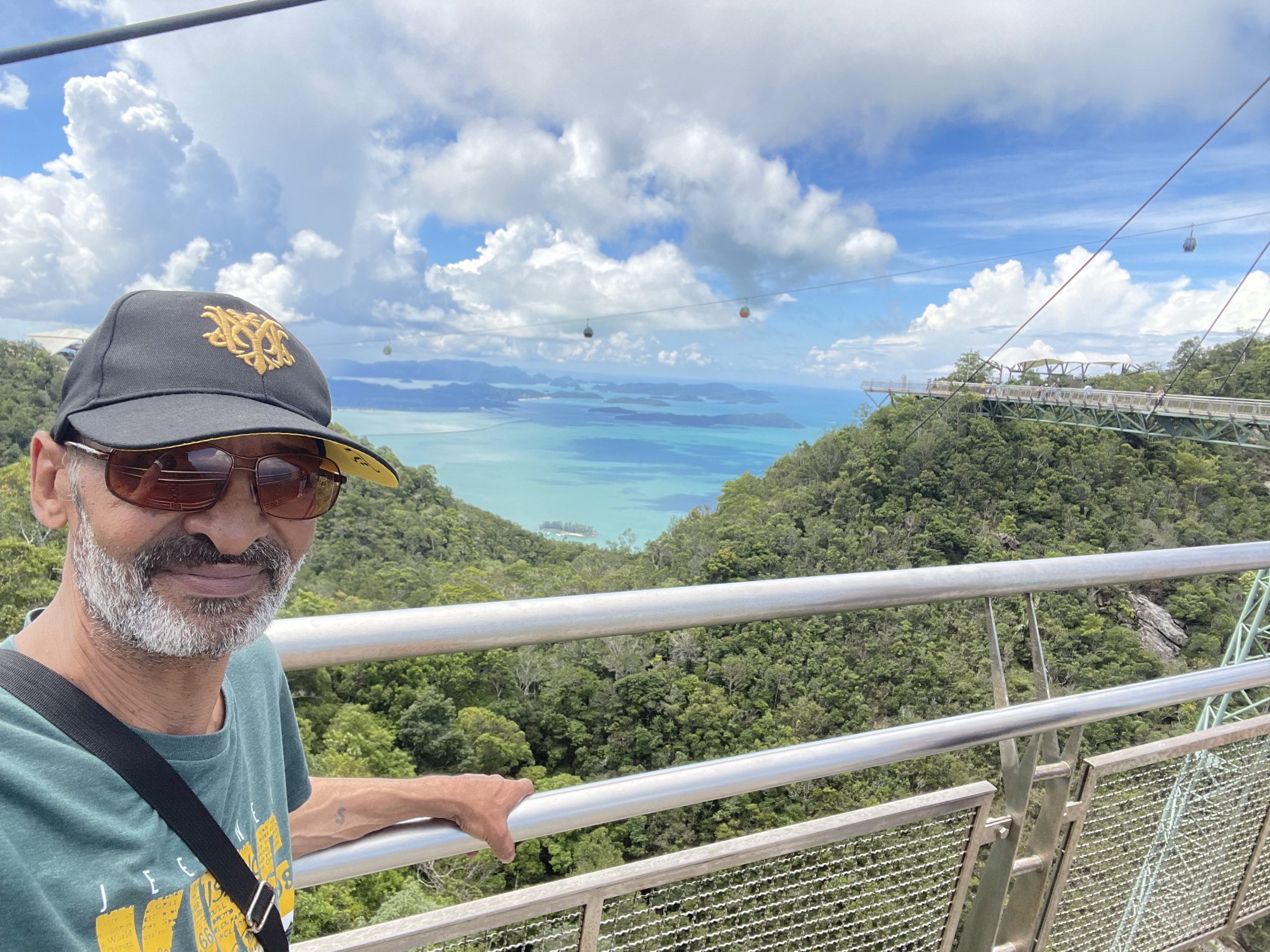 9- الإطلالة التاسعة من كيبل الجبل ” التلفريك في جزيرة لنكاوي ، والكثيرون من السائحين محبي مغامرات صعود الجبال ومشاهدة الجسر المعلق ، والأجواء شبه غائمة ، وسبحان الله وبحمده وسبحان الله العظيم