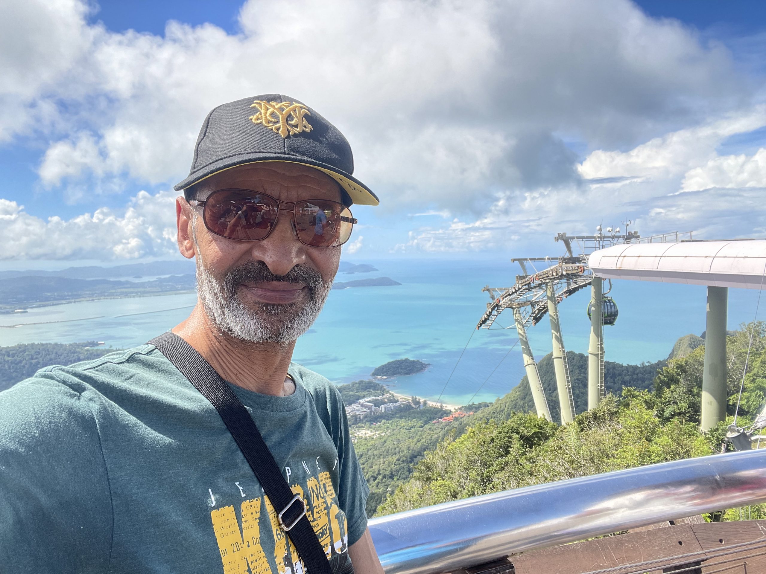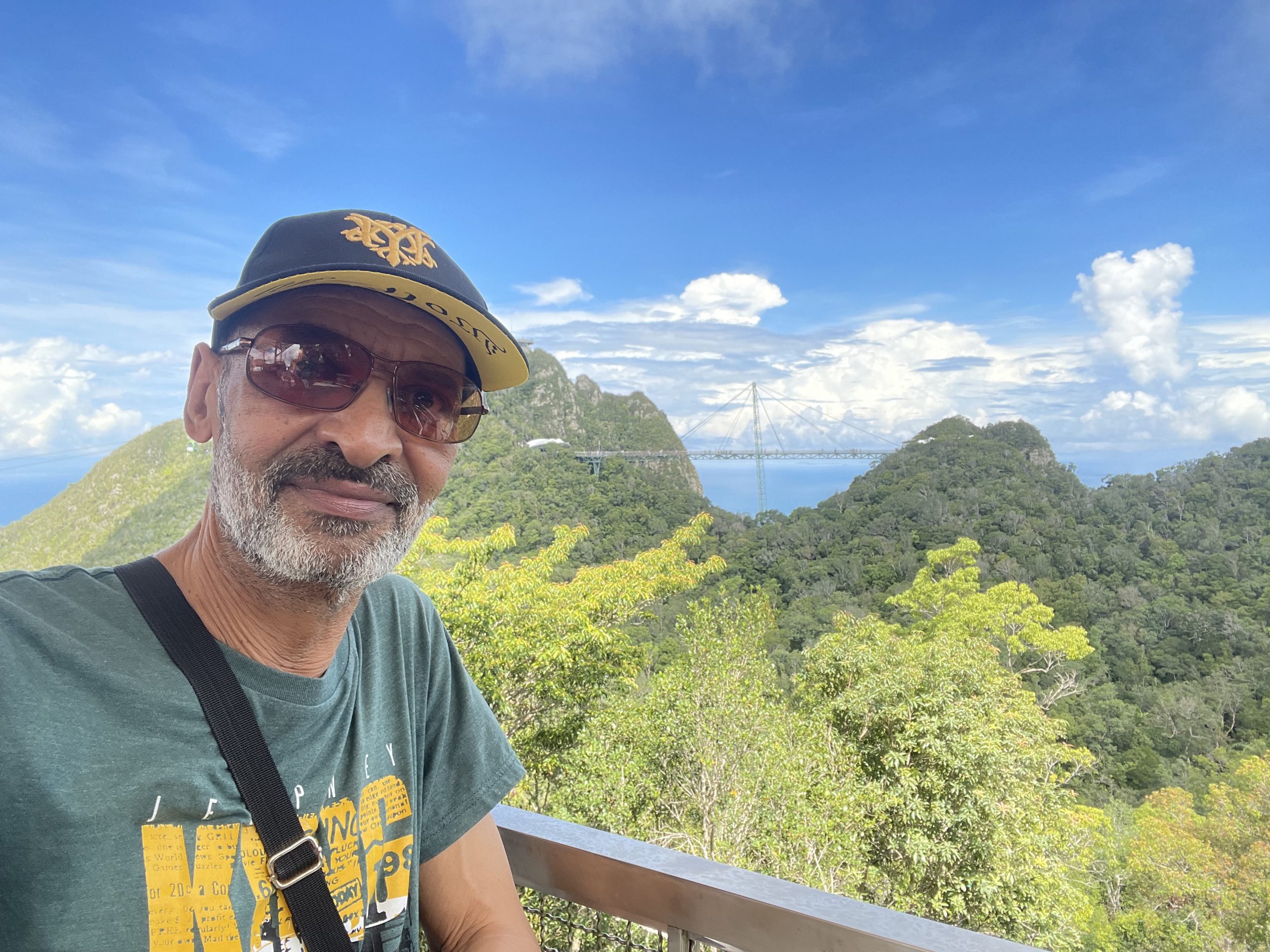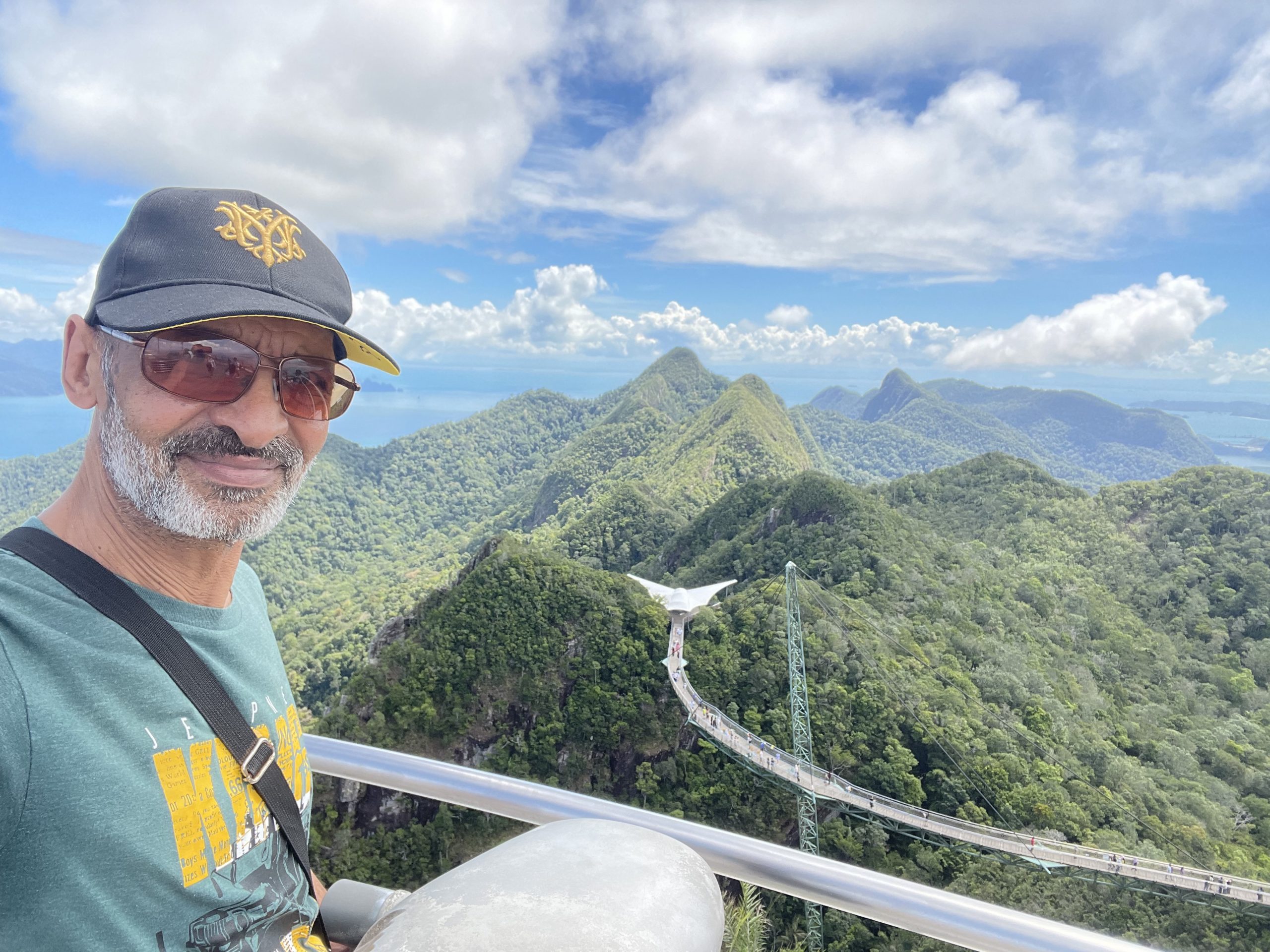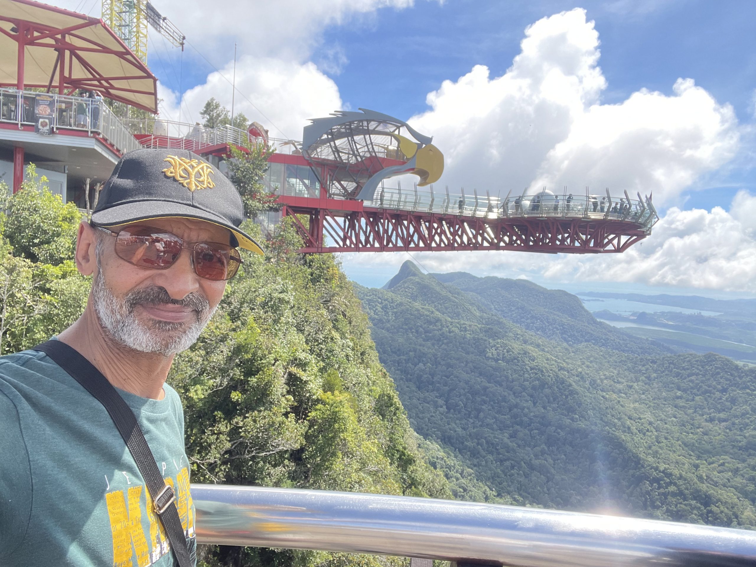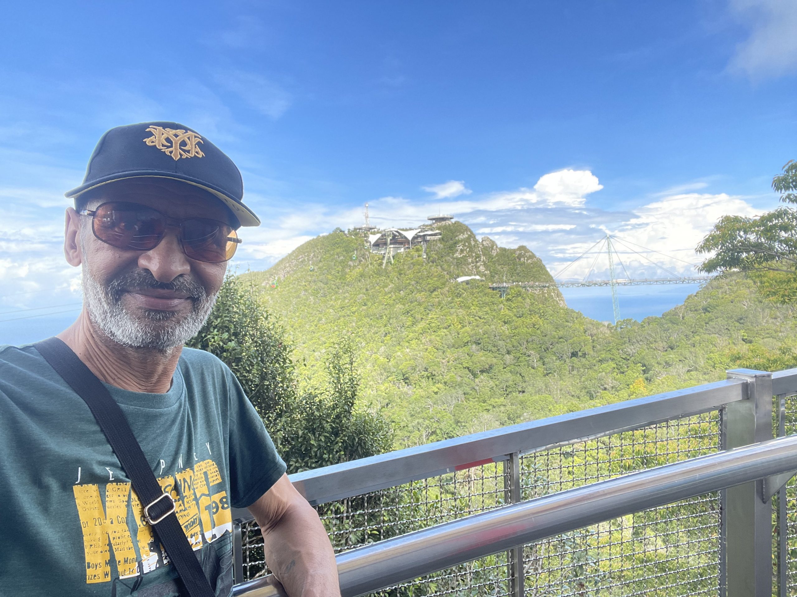 9- الإطلالة التاسعة من كيبل الجبل ” التلفريك في جزيرة لنكاوي ، والكثيرون من السائحين محبي مغامرات صعود الجبال ومشاهدة الجسر المعلق ، والأجواء شبه غائمة ، وسبحان الله وبحمده وسبحان الله العظيم