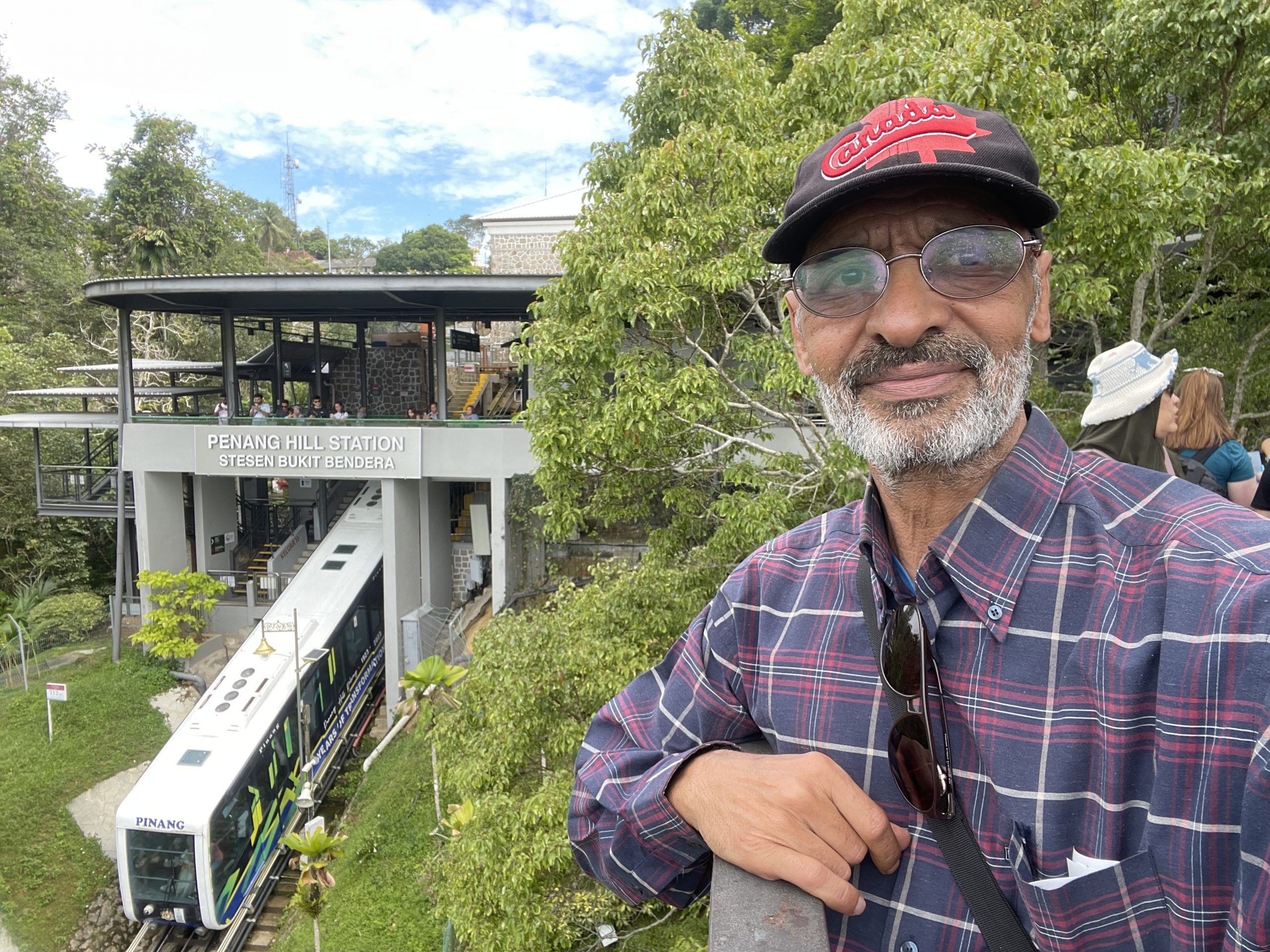 12- الإطلالة الثانية عشرة من قطار الجبل في بينانج حيث الإطلالة البانورامية على معظم مدينة بينانج والكثير من السائحين غالبيتهم من الهنود .