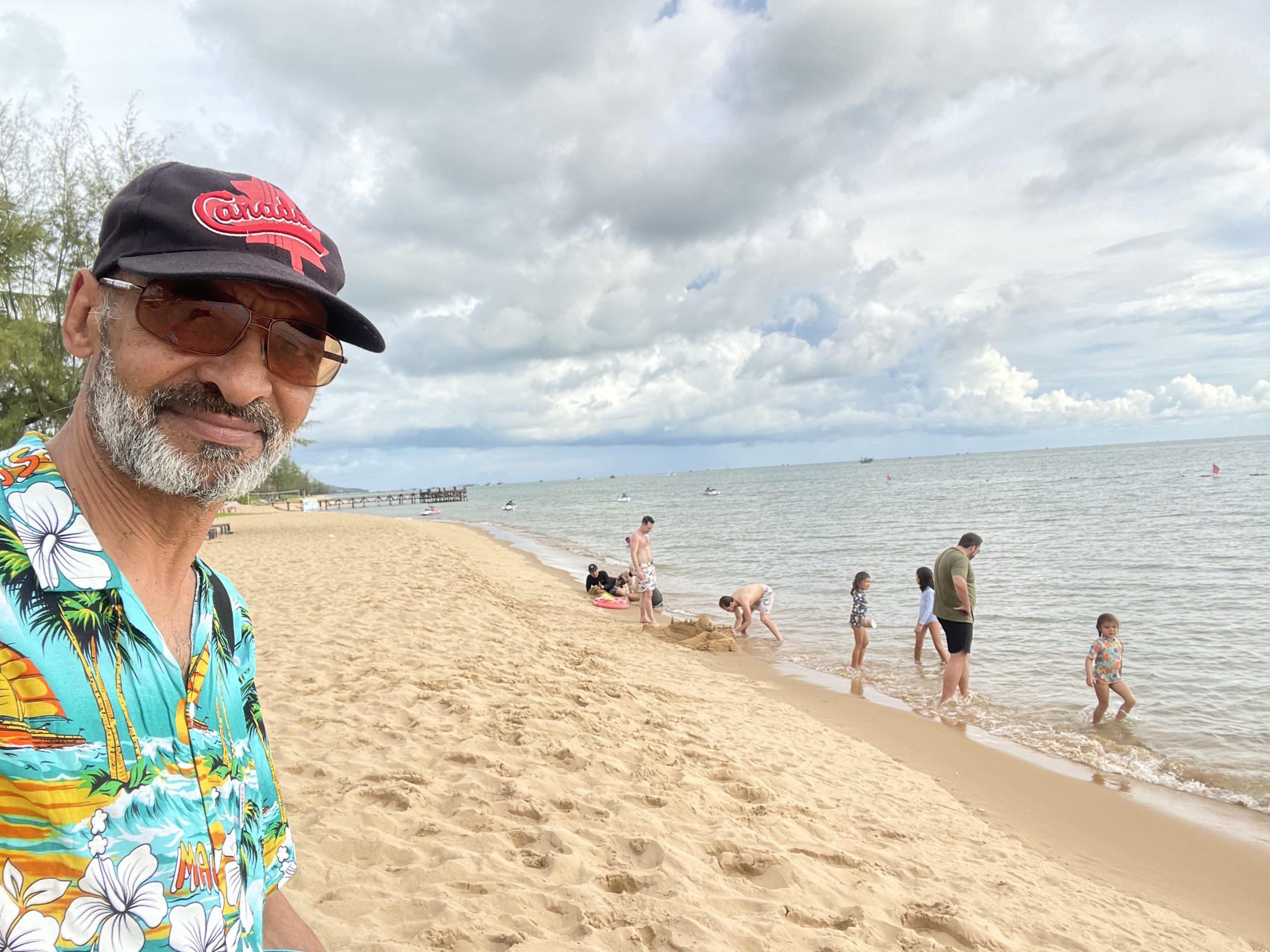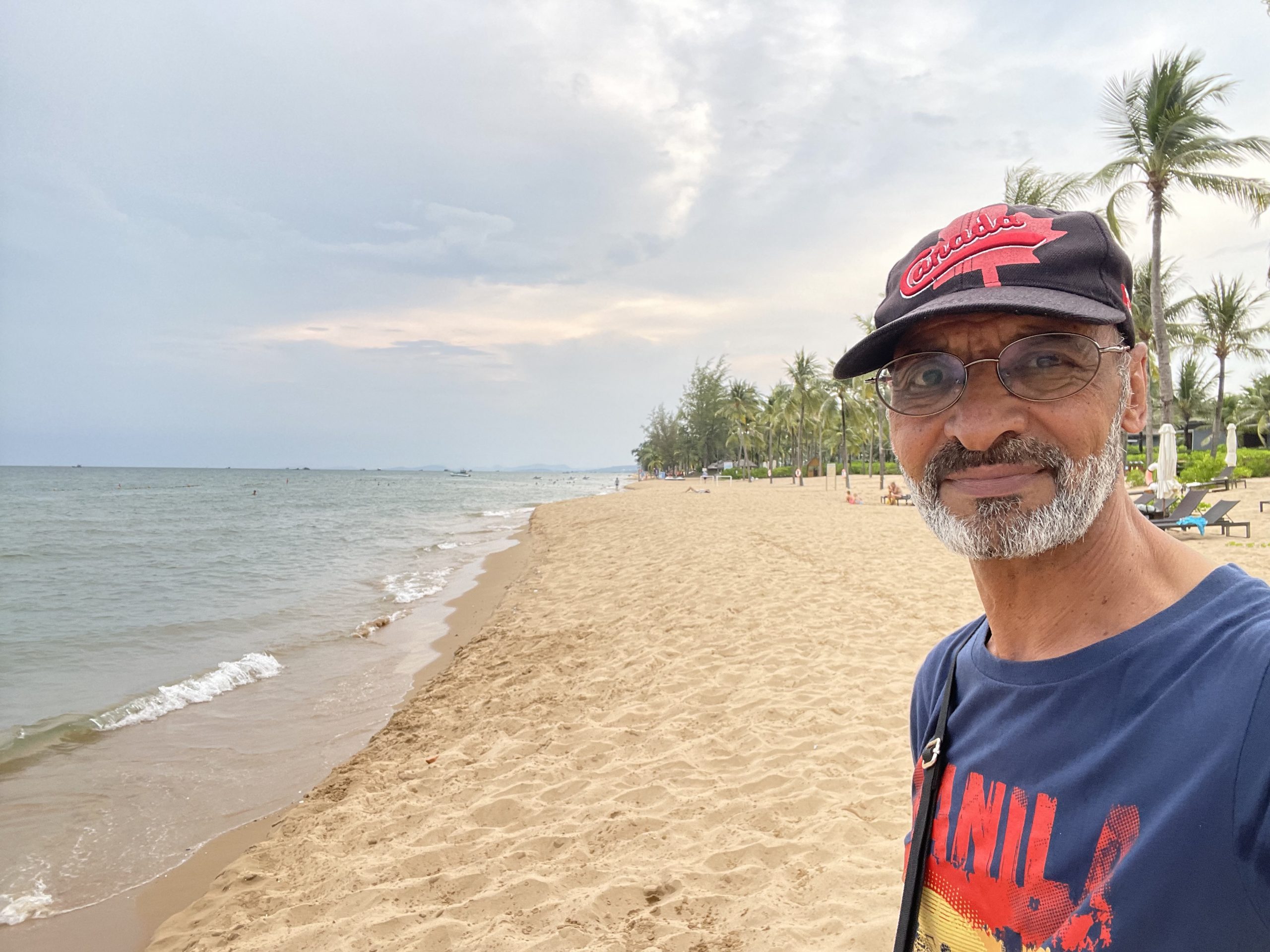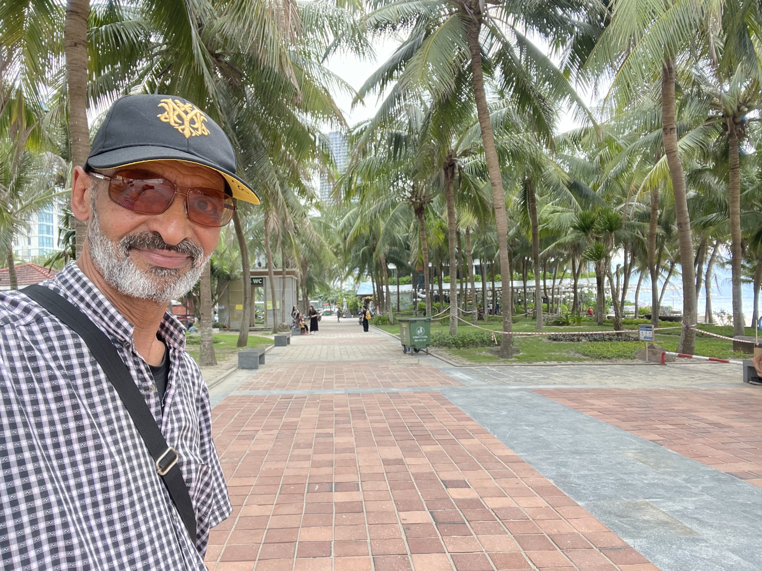26- الإطلالة الساسة والعشرين من جزيرة فوكوك الفيتنامية على الشاطيء في محيط مقر إقامتي ، والجو غائم ومعتدل والبحر مغر للعوم رغم قلة مرتاديه قياسًا بشاطيء دانانج.