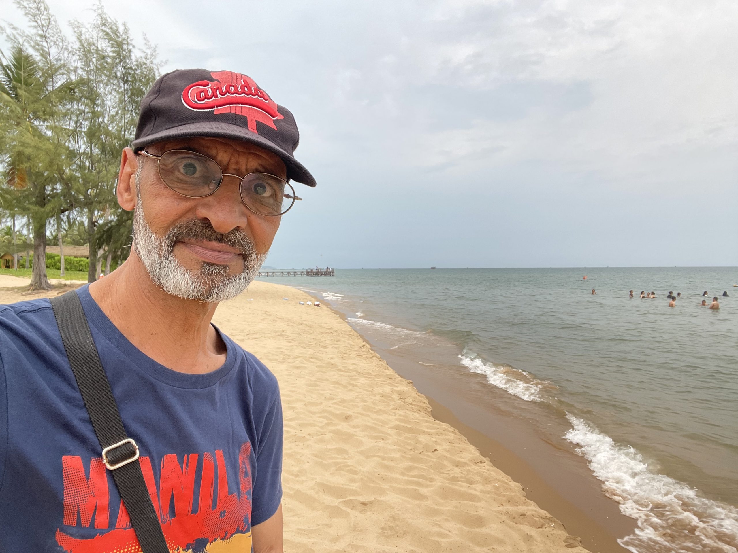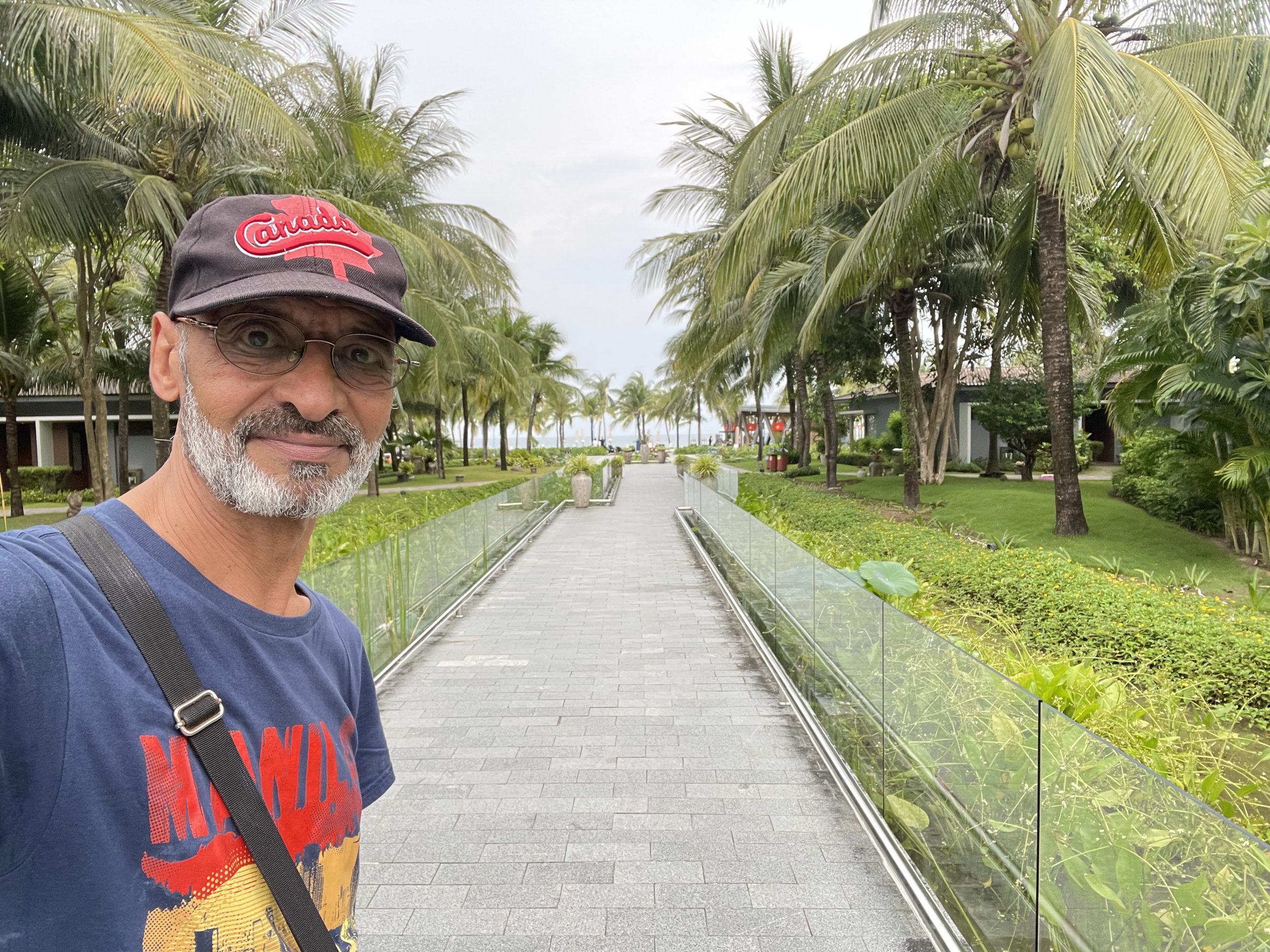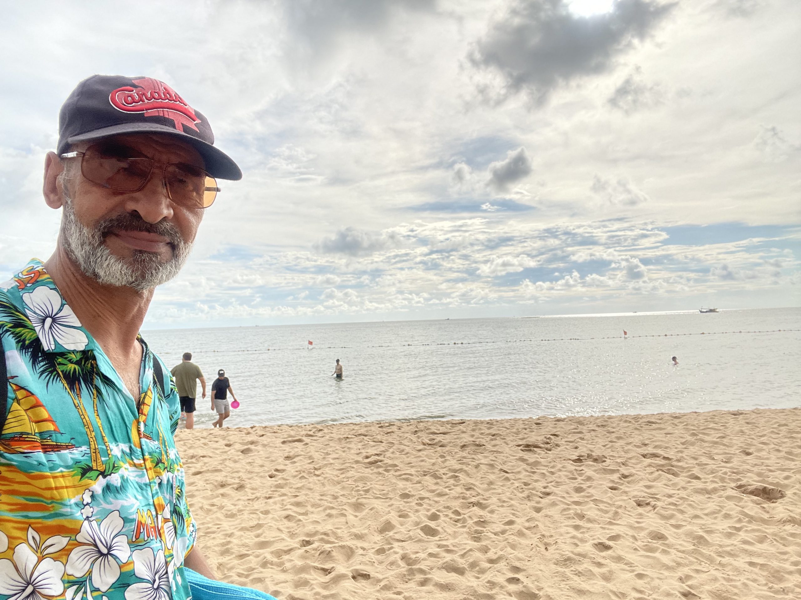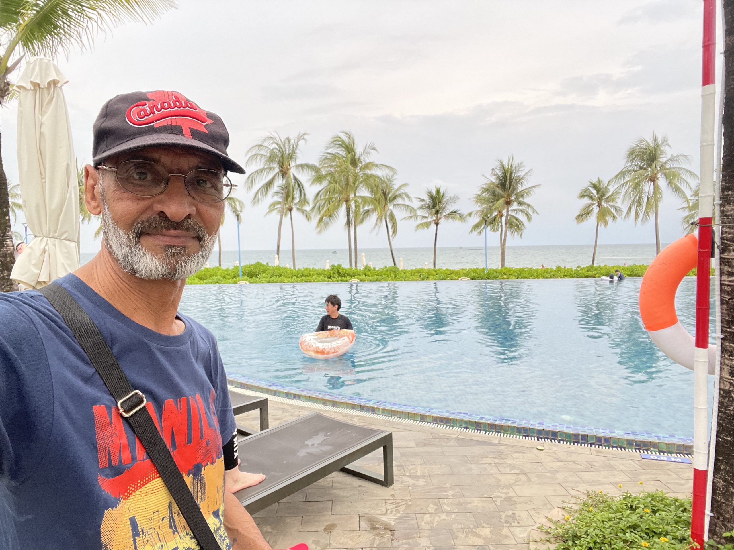 26- الإطلالة الساسة والعشرين من جزيرة فوكوك الفيتنامية على الشاطيء في محيط مقر إقامتي ، والجو غائم ومعتدل والبحر مغر للعوم رغم قلة مرتاديه قياسًا بشاطيء دانانج.