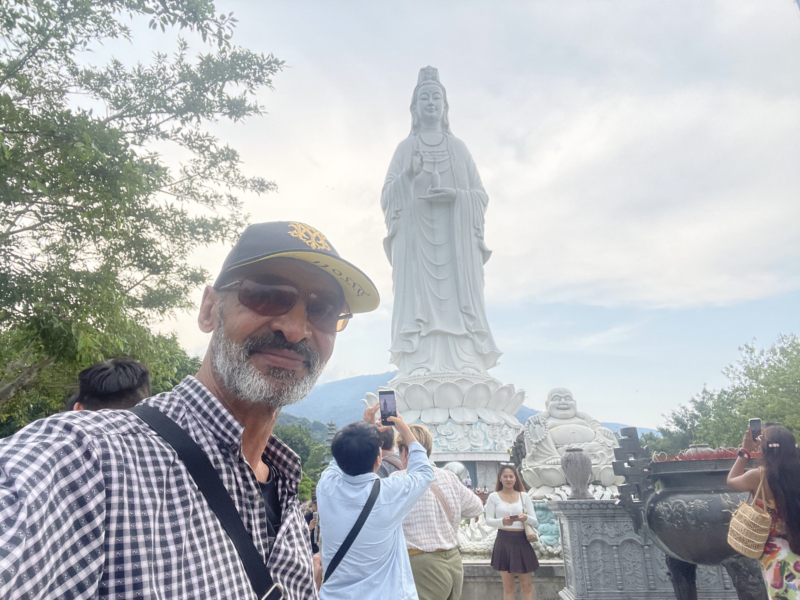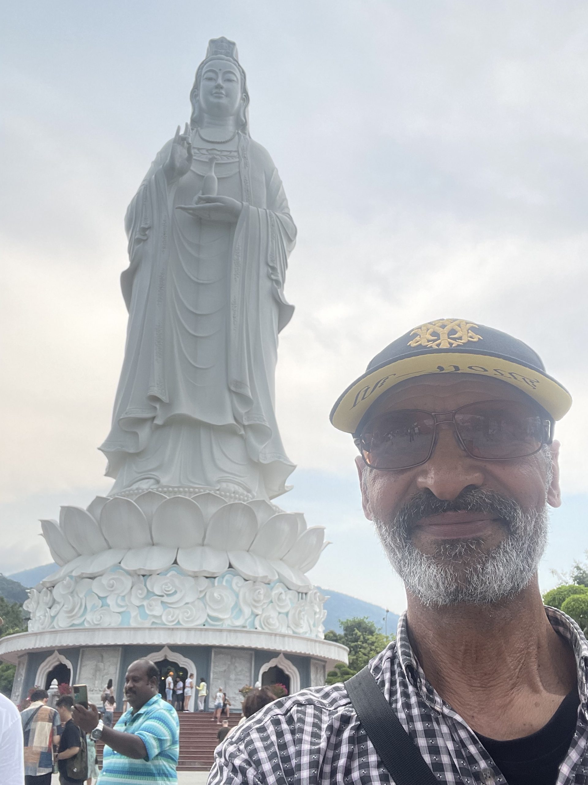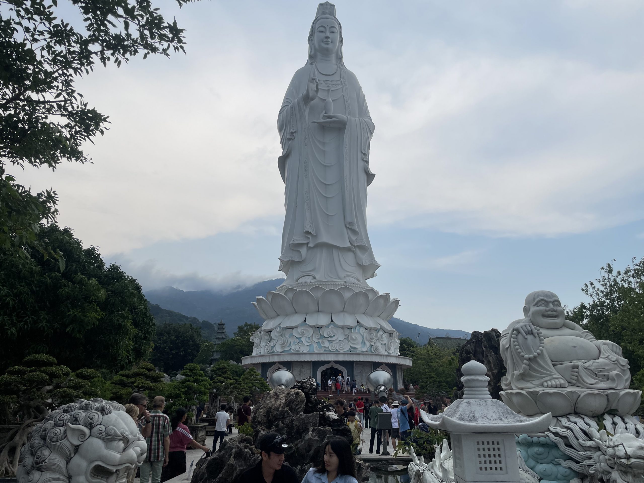 17 – الإطلالة السابعة عشرة من تمثال بوذا الأبيض القائم والنائم المطل على شاطيء دانانج الساحر ، وهنا الكثير من السائحين من مختلف دول العالم والطقس غائم معتدل يميل إلى الحرارة ، وسبحان الله وبحمده وسبحان الله العظيم .
