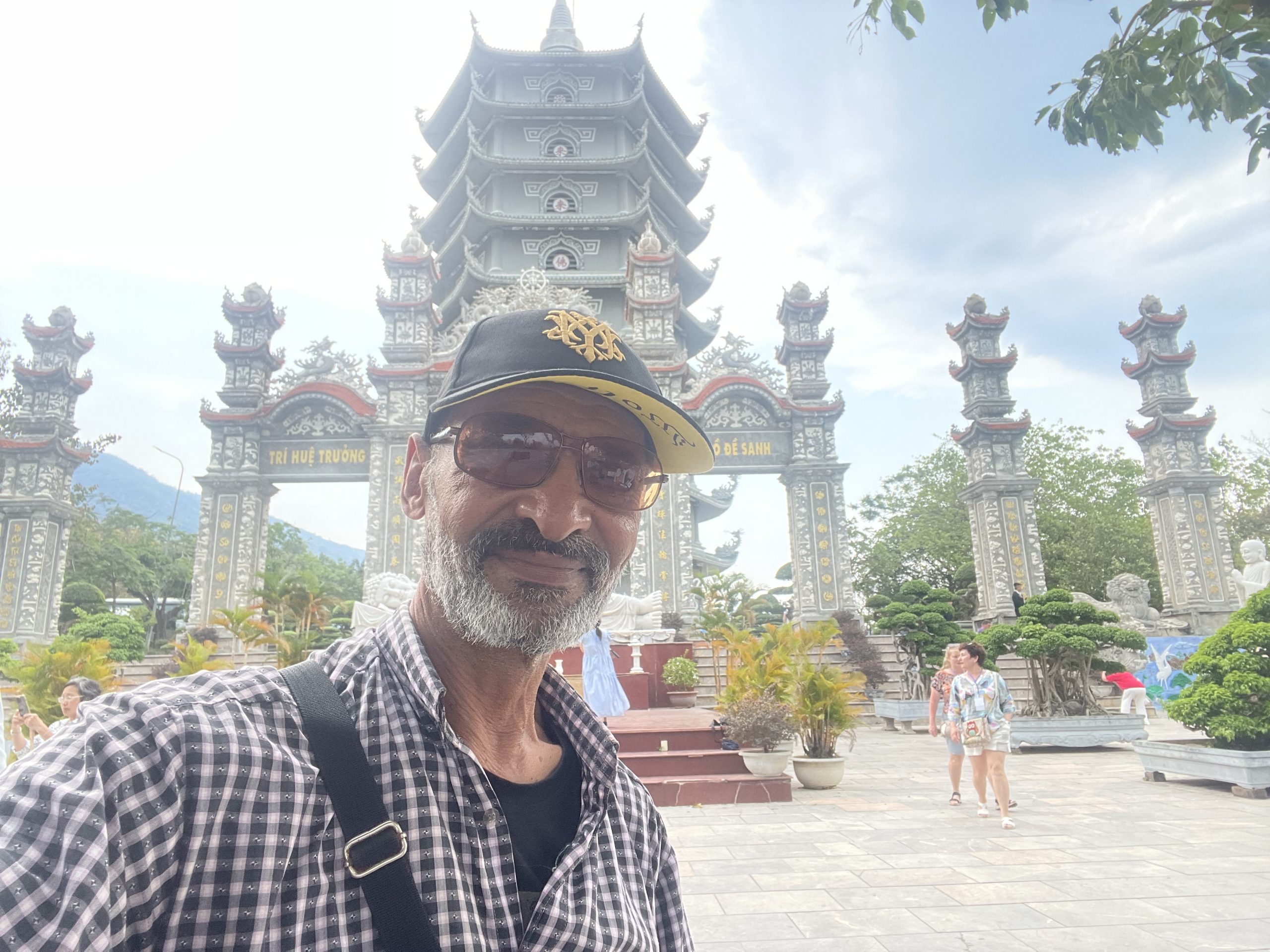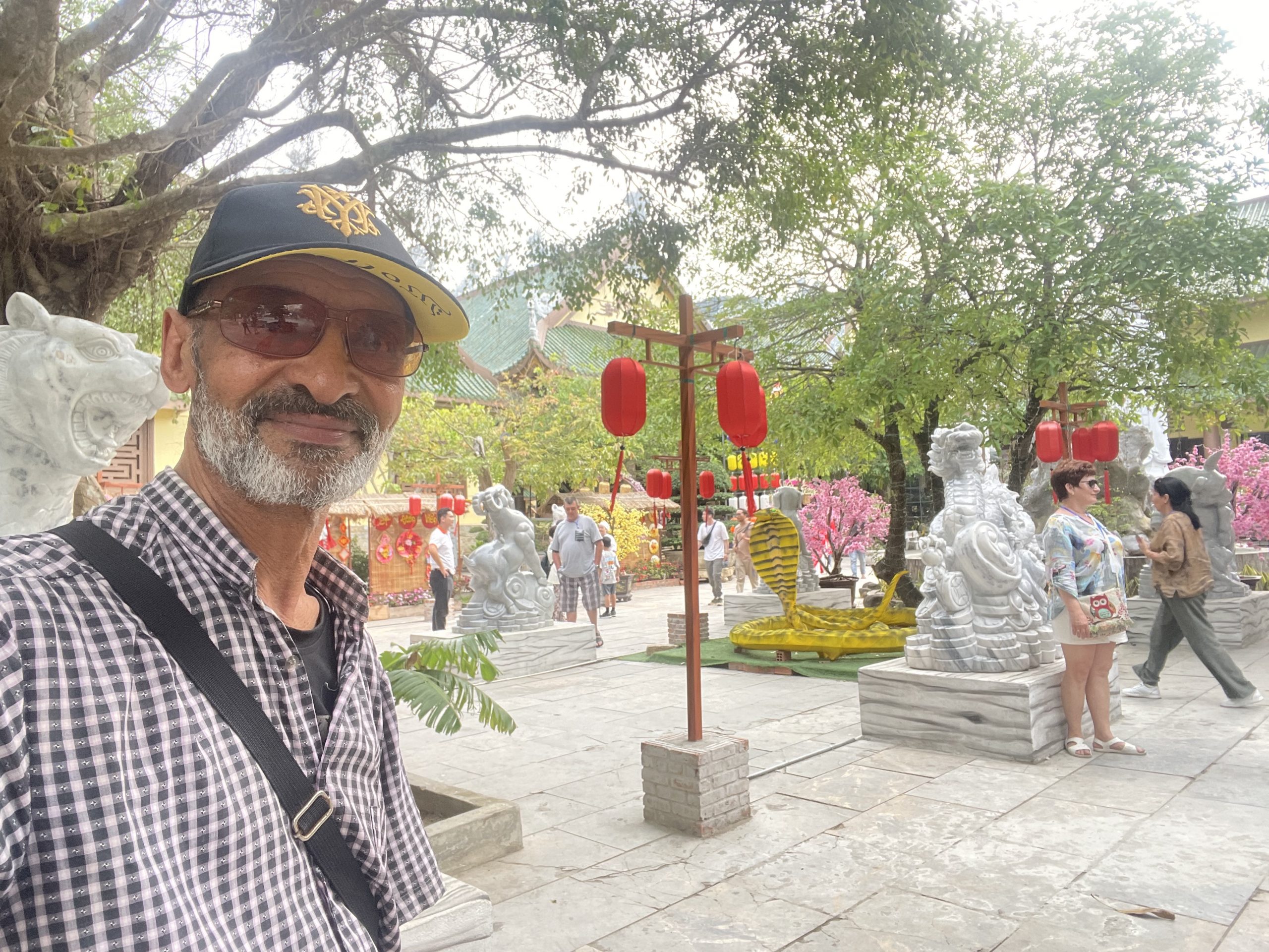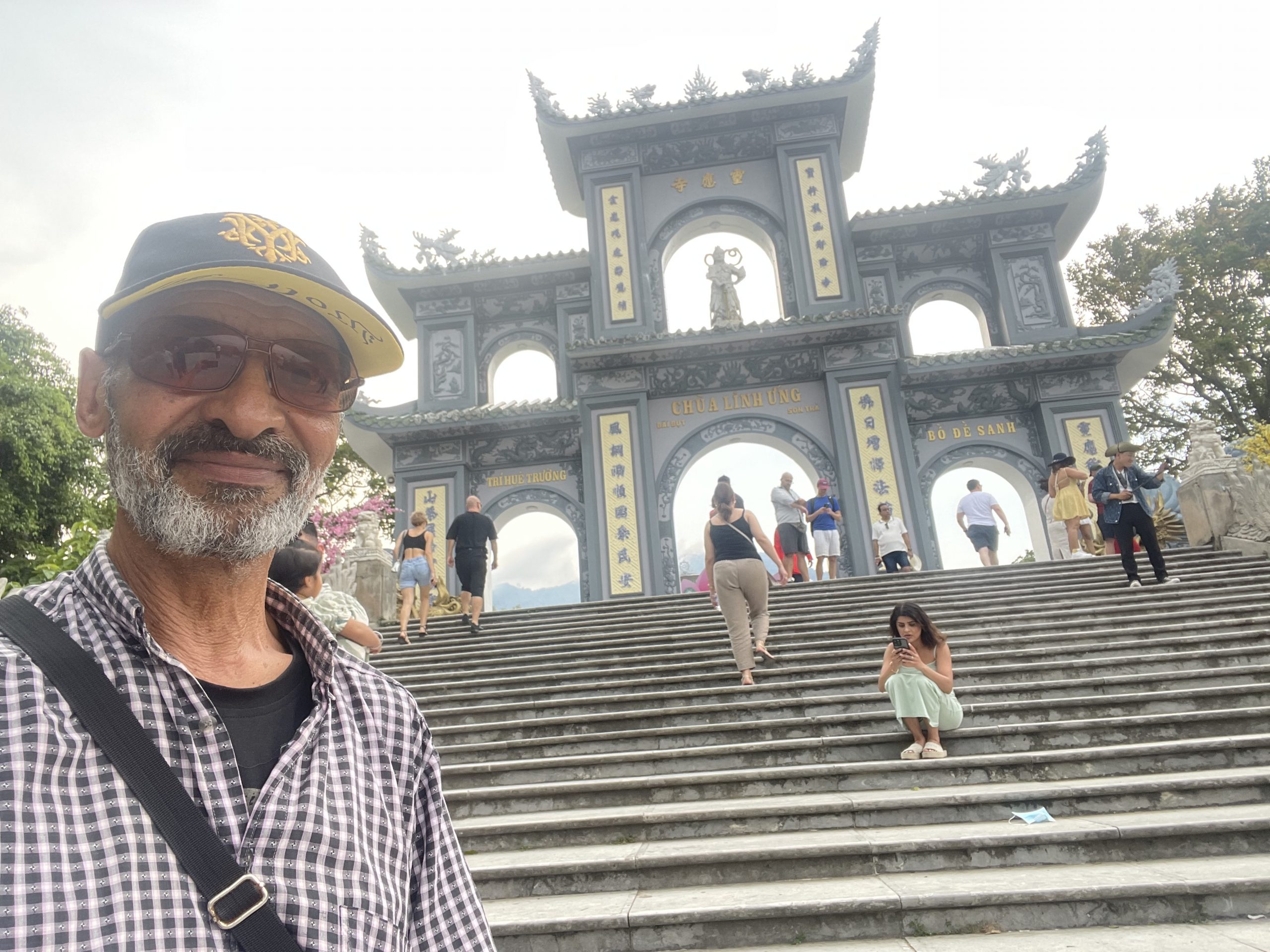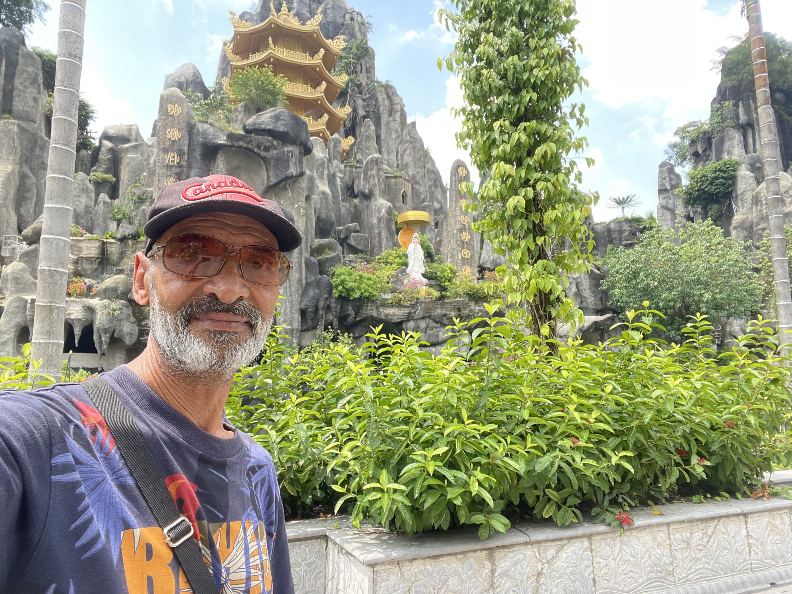 17 – الإطلالة السابعة عشرة من تمثال بوذا الأبيض القائم والنائم المطل على شاطيء دانانج الساحر ، وهنا الكثير من السائحين من مختلف دول العالم والطقس غائم معتدل يميل إلى الحرارة ، وسبحان الله وبحمده وسبحان الله العظيم .