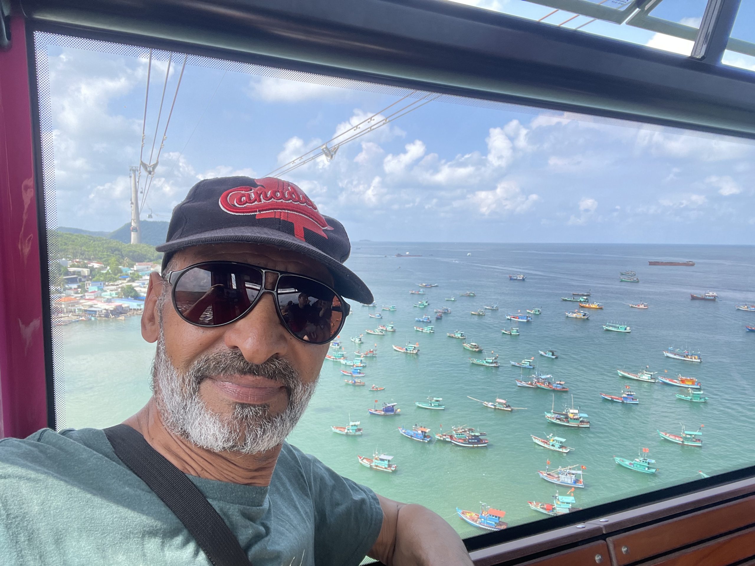 27- الإطلالة السابعة والعشرين من تلفريك هون ثوم جزيرة فوكوك ، ومدينة الألعاب المائية اكواتوبيا واليوم الطقس صافي وحار رغم هطول الأمطار والعواصف الرعدية منذ ليلة البارحة ، هنا أغلب السائحين من الصين واليابان .