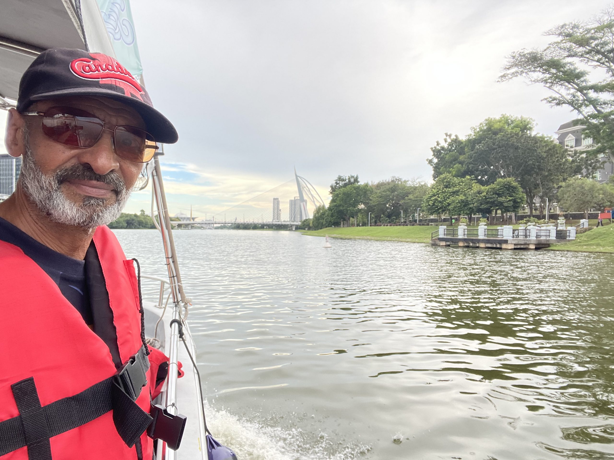 30- الإطلالة الثلاثين والأخيرة في رحلتي التي شملت ماليزيا وفيتنام من بتروجايا ماليزيا في طريق عودتي إلى الوطن العزيز ، من كروز بوت نهري في أجواء غائمة وجو معتدل ، والحمد لله والشكر له تعالى على تمام تنفيذ خطتي السياحية بسلام بنسبة لا تقل عن 95٪ .